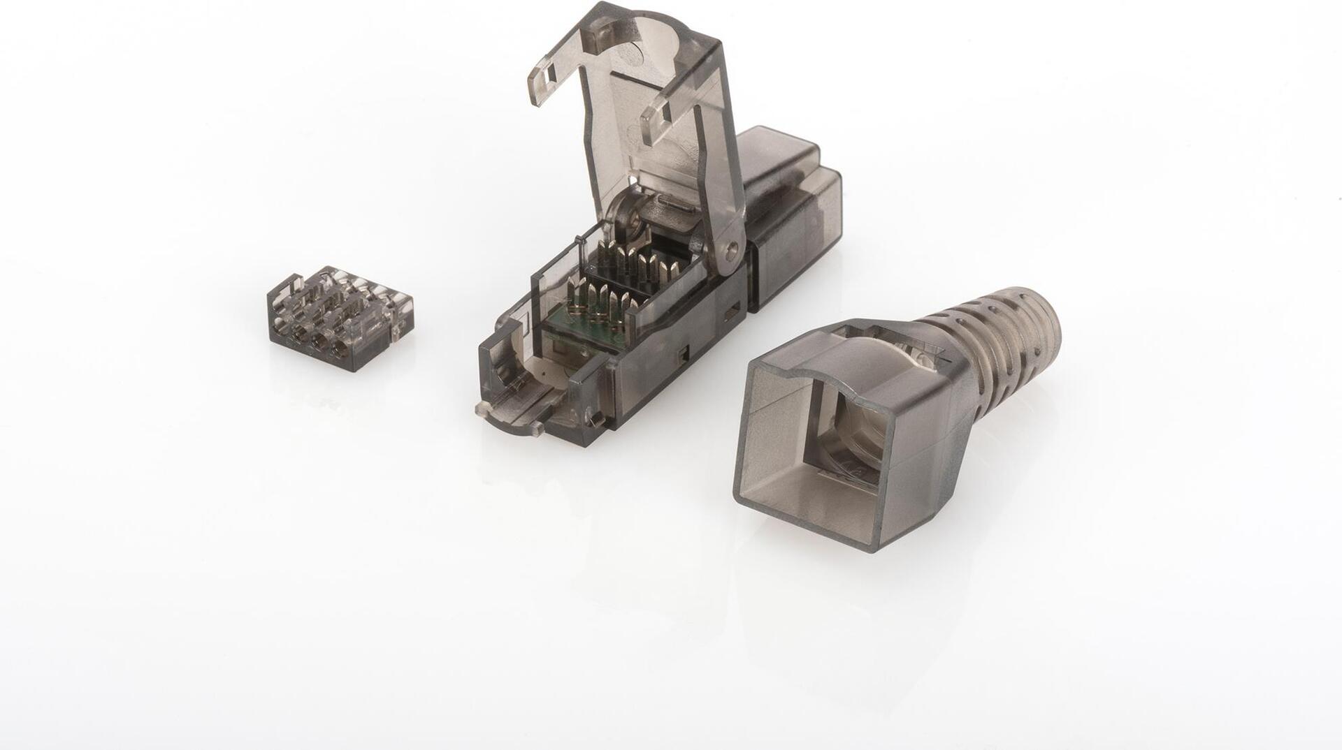 Der DIGITUS Professional RJ45-Stecker für Feldanwendungen ist ein moderner und hochwertiger RJ45-Stecker, der sich nicht nur durch die super einfache Anwendbarkeit auszeichnet, sondern dem Feldkonfektionär bei jedem Einsatz stets zuverlässig und zeitsparend zur Seite steht. Die schnelle Montage in nur 120 Sekunden ganz ohne Spezialwerkzeug, sowie die enorme Flexibilität, macht ihn zur perfekten Wahl an allen Einsatzorten. Er eignet sich für sämtliche Netze, von Voice bis 10 Gigabit Ethernet. Zufriedene Kunden durch schnelle und kostensparende Installation, Reparatur und Wartung, sind die logische Folge dieses innovativen RJ45-Steckers. Warum kompliziert, wenn´s auch einfach geht? Überzeugen Sie sich selbst!