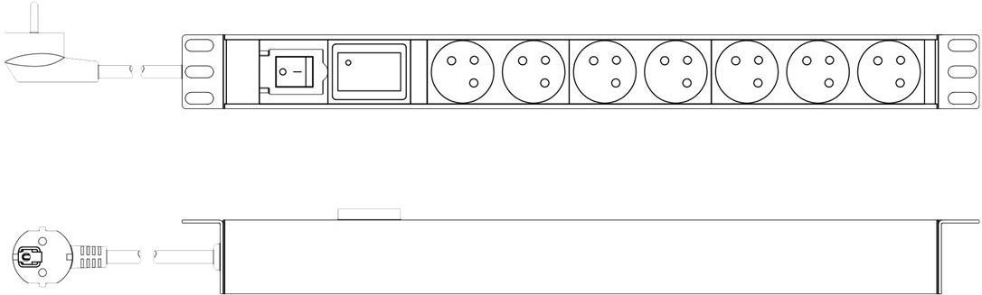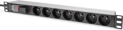 DIGITUS - Stromverteilungseinheit (Rack - einbaufähig) - Wechselstrom 230 V - Eingabe, Eingang CEE 7/7 - Ausgangsanschlüsse: 7 (CEE 7/5) - 1U - 48,3 cm (19") - 2,0m Schnur (DN-95407-FR)