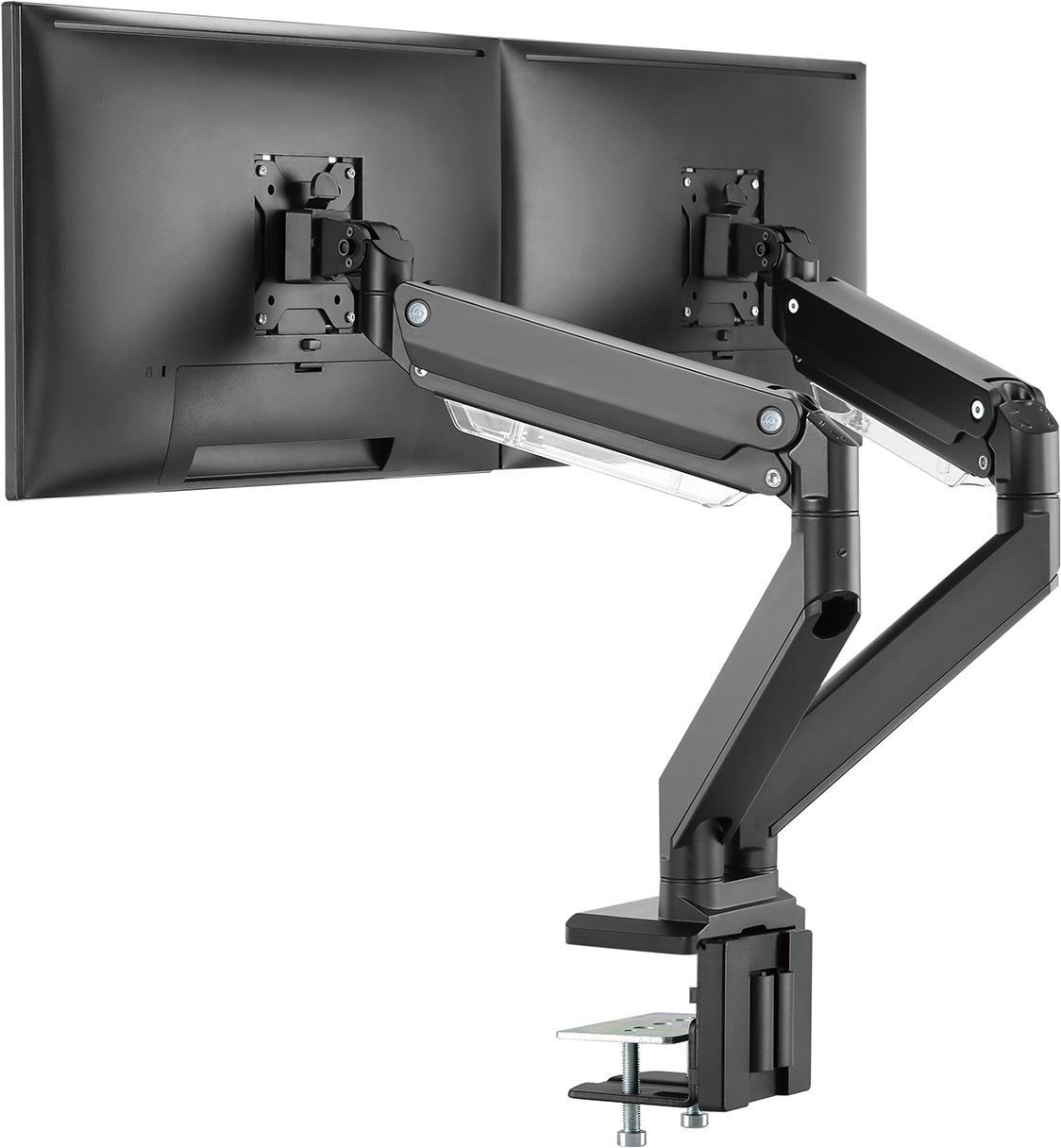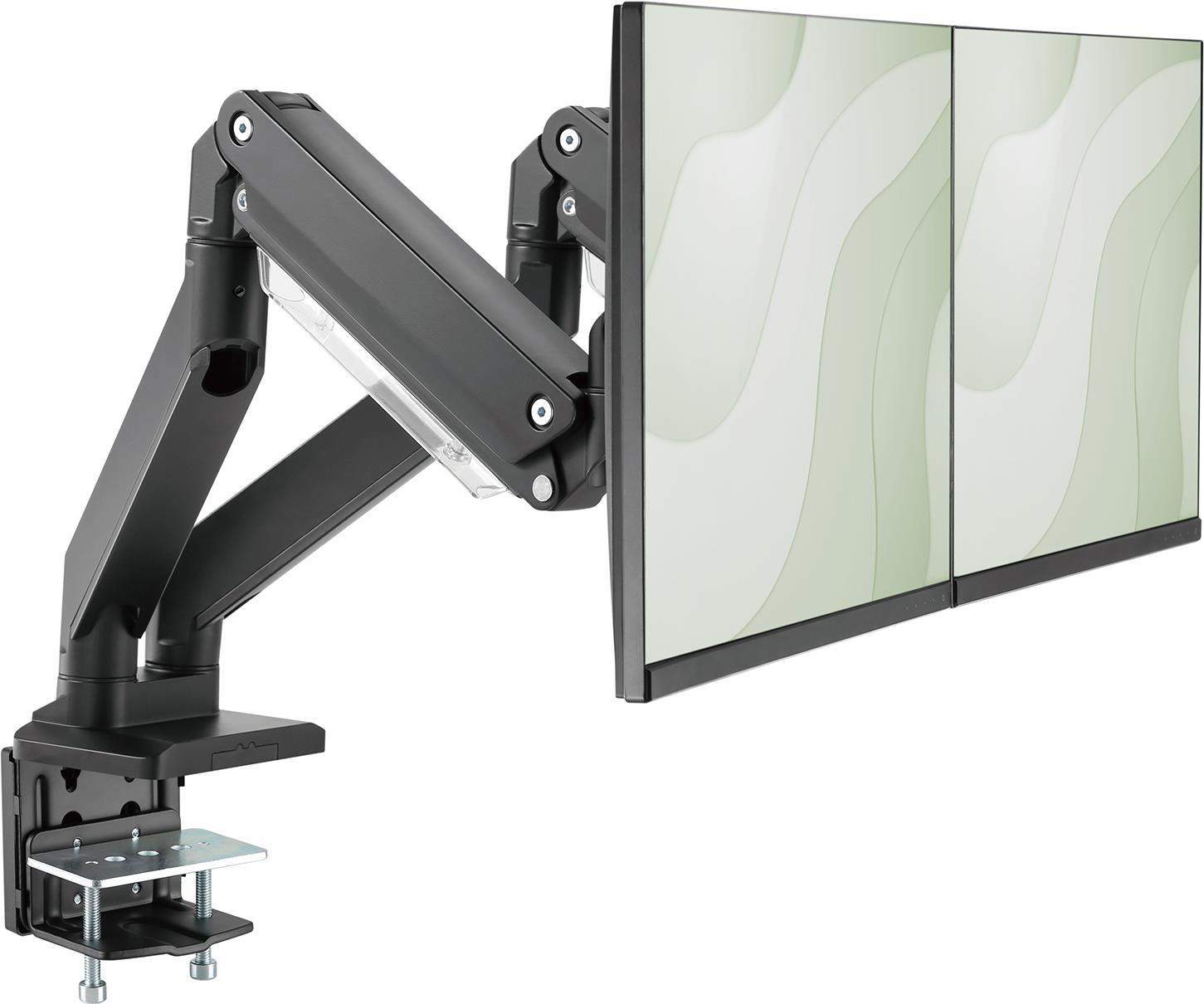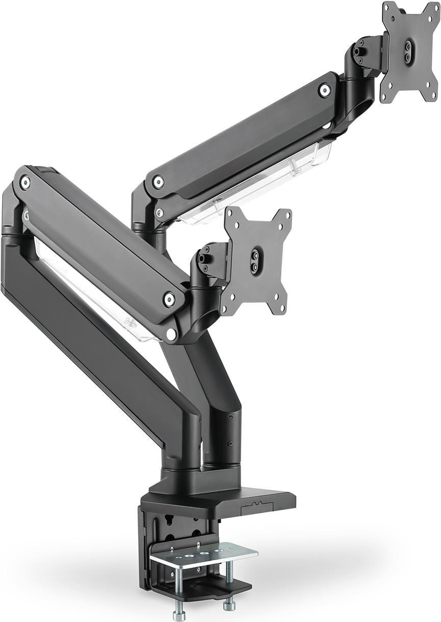 DIGITUS - Befestigungskit (Spannbefestigung für Tisch, 2 VESA-Befestigungshalterungen, 2 Schwenkarme) - für 2 LCD-Displays / Curved LCD-Displays - gas spring - Kunststoff, Aluminium, Stahl - mattschwarz - Bildschirmgröße: 38.1-88.9 cm (15"-35") - C-Zwinge