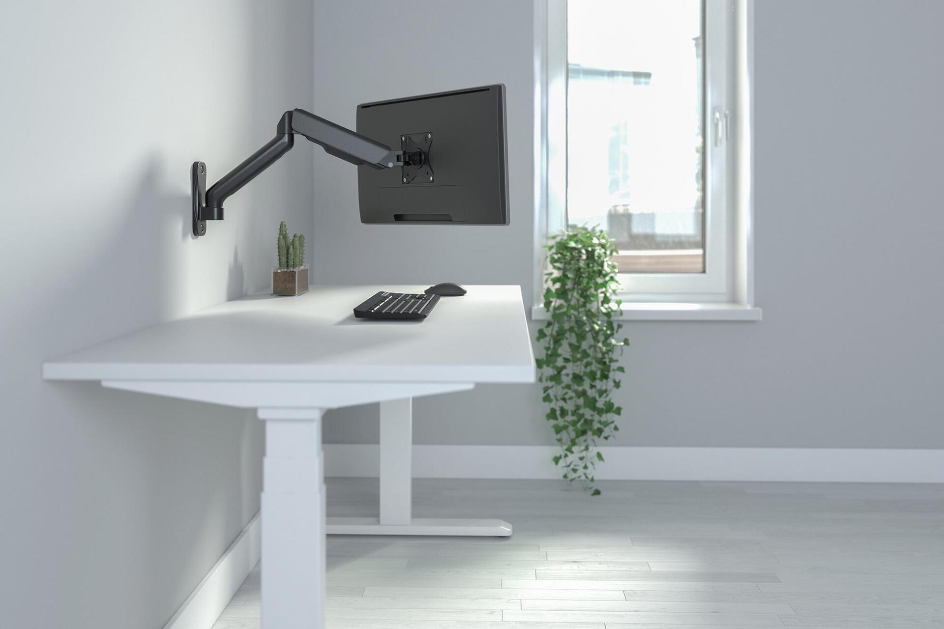 Die universelle Monitor-Wandhalterung von DIGITUS® unterstütz Flat- sowie Curved-Monitore bis 32" mit max. 9 kg Gewicht. Die Gasdruckfeder sowie der Schwenkarm garantieren bequemes und flexilibles Justieren der Monitorposition. Das ingrierte Kabelmanagement sorgt für einen organisierten und aufgeräumten Arbeitsbereich. Die Wandhalterung bietet eine VESA Kompatibiltät von 75x75 sowie 100x100.