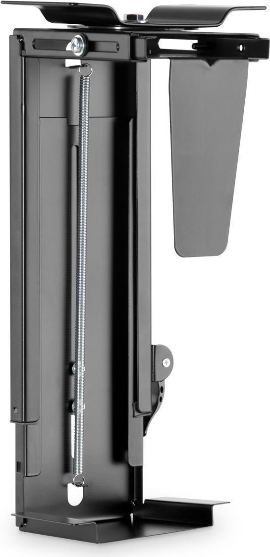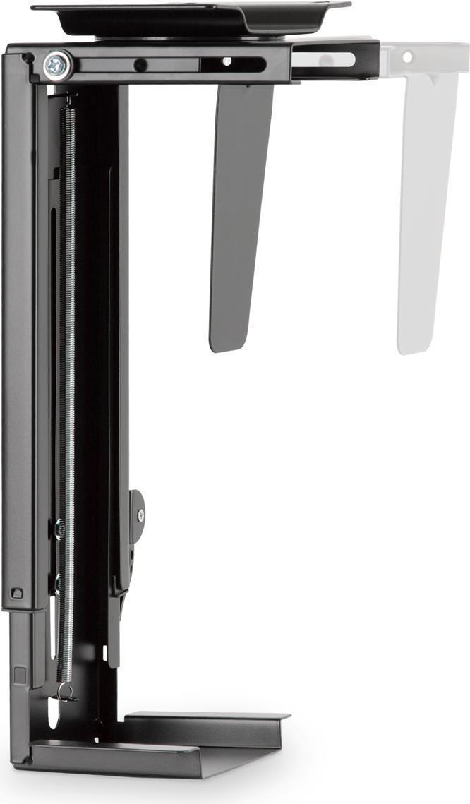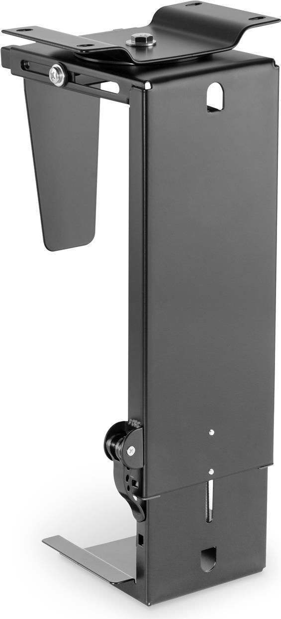 Die Universal PC-Halterung von DIGITUS® ist für die Montage unterhalb des Schreibtisches konzipiert. Sie kann PC-Gehäuse von 30 - 51 cm Höhe und 8,8 - 20,3 cm in der Breite aufnehmen. Für die Gehäusetiefe gibt es keine Begrenzung, solange die maximale Traglast von 10 kg dabei nicht überschritten wird. Ein Griff für leichte Arretierung der gewünschten Höhe und Breite erleichtert die stufenlose Anpassung an Ihr PC-Gehäuse - ganz ohne Werkzeug. Die gesamte Halterung lässt sich um 360° drehen und erleichtert beispielsweise den Zugang zu Anschlüssen auf der Rückseite. Der PC wird hoch über dem Boden positioniert, sodass Staub und Schmutzansammlungen vorgebeugt und die Reinigung unterhalb des Schreibtisches erleichtert wird. Ein praktisches Allround-Talent für viele gängigen Computer-Gehäuse.