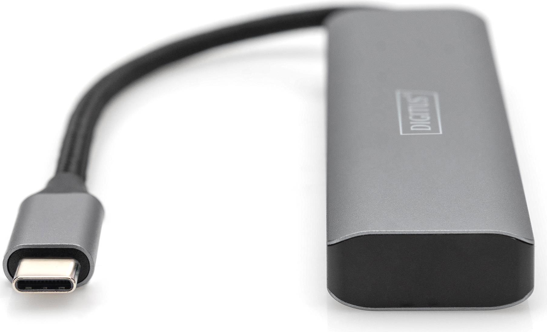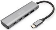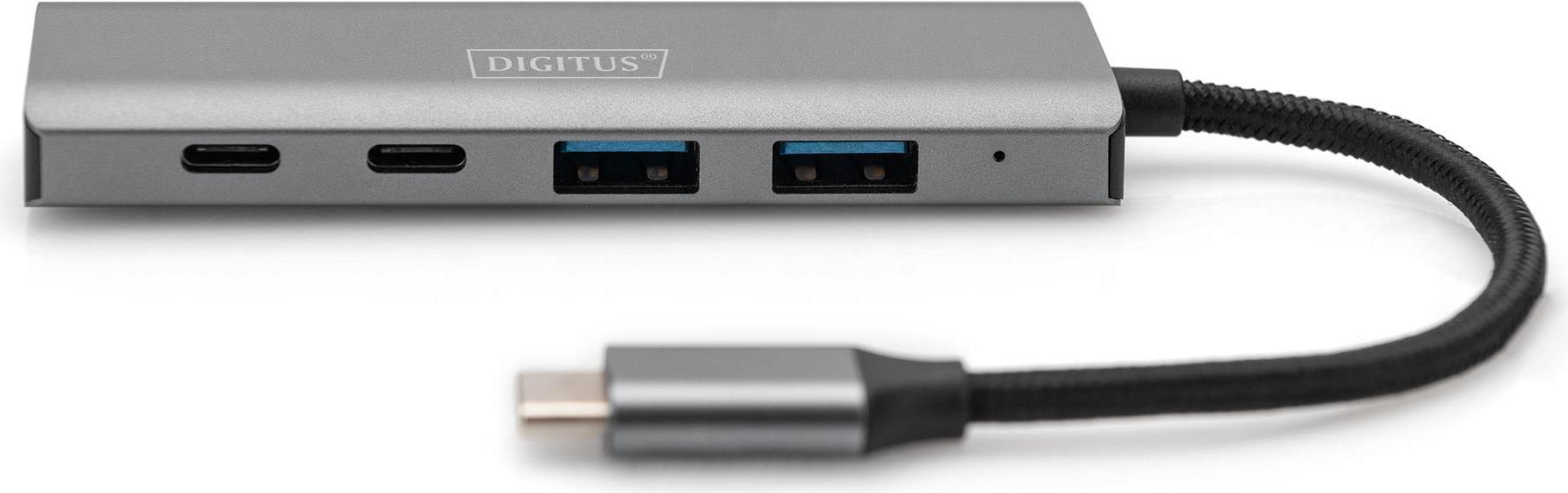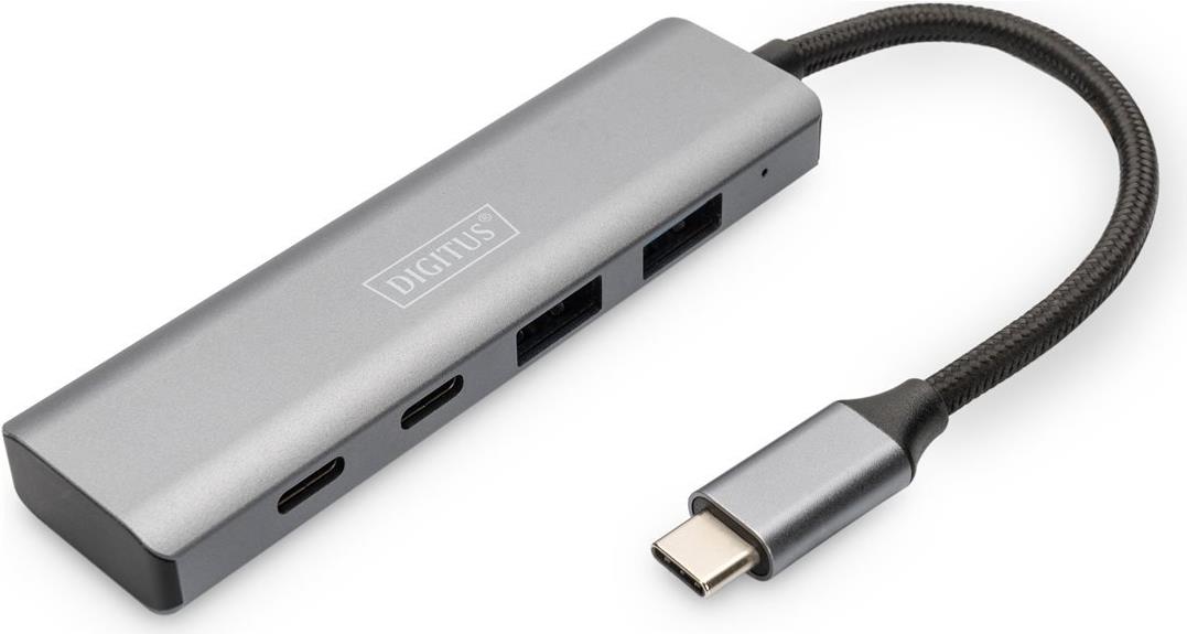 Digitus USB-C 4 Port HUB - 2x USB A + 2x USB-C - USB 3.2 Gen 1 (3.1 Gen 1) Type-C - USB 3.2 Gen 1 (3.1 Gen 1) Type-A - USB 3.2 Gen 1 (3.1 Gen 1) Type-C - 10000 Mbit/s - Grau - Aluminium - Rundkabel (DA-70245)