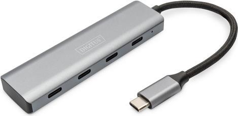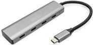 Digitus USB-C 4 Port HUB - USB 3.2 Gen 1 (3.1 Gen 1) Type-C - USB 3.2 Gen 1 (3.1 Gen 1) Type-C - 5000 Mbit/s - Grau - Aluminium - Rundkabel (DA-70246)