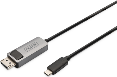 Das DIGITUS USB Typ-C zu DisplayPort bidirektionale Adapterkabel unterstützt die Übertragung von einer USB Typ-C Quelle zu einer DisplayPort Schnittstelle. Ebenso unterstützt es die Übertragung von einer DisplayPort-Quelle zu einer USB Type-C-Schnittstelle. So können Sie beispielsweise Ihren Laptop (mit USB Type-C ausgestattet) an Ihren Monitor, Fernseher oder Projektor (DisplayPort-Schnittstelle) anschließen oder Ihren PC (DisplayPort-Ausgang) mit einem Monitor (USB Type-C-Schnittstelle) verbinden. Die Stromversorgung erfolgt über den USB-Anschluss, sodass keine externe Stromquelle erforderlich ist.Produkttext[/head]Das DIGITUS® USB-Typ-C auf DisplayPort Adapterkabel unterstützt die Übertragung von USB-Typ-C-Quellen zu DP-fähigen Displays.- USB Typ-C auf DisplayPort Adapterkabel- Unterstützt die Übertragung von USB-Typ C Schnittstelle auf DisplayPort Schnittstelle- Unterstützt DP Alt-Mode- Unterstützt DisplayPort 1.4 Version und ist Abwärtskompatibilität (DP 1.3/1.2/1.1)- Unterstützt Auflösungen bis zu 8K (7680x4320) bei einer Bildwiederholungsrate von 30Hz.- Umgehen Sie Adapter mit einem Plug-and-Play-Kabeladapter, der keine externe Stromversorgung benötigt.- Type-C™-Stecker beidseitig verwendbarDas DIGITUS® USB-Typ-C auf DisplayPort Adapterkabel unterstützt die Übertragung von einer USB-Typ-C Quelle auf eine DisplayPort Schnittstelle. So können Sie beispielsweise Ihren Laptop (USB-Typ-C-Ausgestattet) mit Ihrem Monitor, TV oder Beamer (DisplayPort Schnittstelle) verbinden. Das Adapterkabel unterstützt UHD Auflösungen bis zu 8K@30Hz / 4K@144 Hz / 2K@165 Hz. So wird gewährleistet, dass die nächsten Gaming-Sessions- und Home-Cinema-Erlebnisse hochauflösend dargestellt werden. Bei Verwendung mit Mac-Geräten unterstützt das Kabel den Spiegelungs- oder Erweiterungsmodus und bei Verwendung mit Windows-Geräten den Duplizier- oder Erweiterungsmodus.[head]Hauptmerkmale