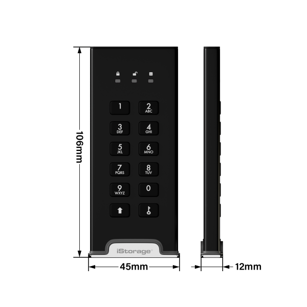 Die diskAshur M² PIN authentifizierte, hardwareverschlüsselte SSD hat ein ultraportables, robustes und schlankes Design, das die fortschrittlichsten Sicherheitsattribute enthält, für die iStorage bekannt ist.