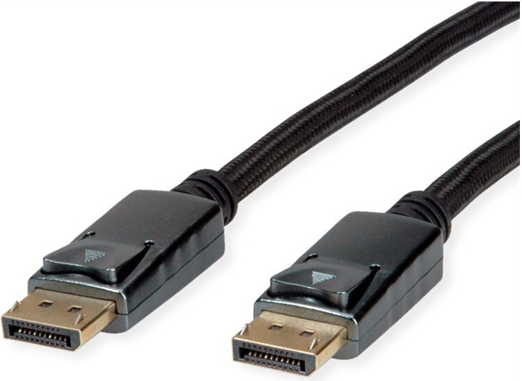 ROLINE DisplayPort Kabel mit beidseitigem DP-Anschluss für das Verbinden eines Ultrabooks, Notebooks/Laptops oder PCs mit einem Monitor, TV, Beamer oder Projektor - für Bildschirmübertragungen in exzellenter Qualität mit einer 8K Auflösung von bis zu 7680x4320 @60Hz! • DisplayPort ist ein universeller Verbindungsstandard für die Übertragung von Bild- und Tonsignalen, der in der Computerbranche, der Industrie und der modernen Hausverkabelung weithin bekannt und geschätzt ist. Die Anwendungen umfassen hauptsächlich den Anschluss von Monitoren oder Projektoren an Computer, Notebooks/Laptops, Ultrabooks, NUCs und ähnliche Geräte. • Der Steckverbinder benötigt weniger Platz als VGA oder DVI und eignet sich daher besser für tragbare Geräte für zwei Anschlüsse an einer Grafikkarte (auf einer Slotplatte). • DisplayPort v1.4 unterstützt Display Stream Compression 1.2a (DSC), Vorwärtsfehlerkorrektur und den HDR10-Standard. • DP v1.4 kann eine maximale Auflösung von 8K (7680x4320) @60Hz oder 4K (3840x2160) @120Hz erreichen. • Das robuste Nylonschutzgeflecht schützt das DisplayPort Kabel effektiv und setzt es optisch in Szene • Das praktische Steckerdesign verhindert das Herausrutschen des Kabels aus der DisplayPort-Buchse und garantiert eine stabile Videoübertragung.Produkttext[/head] ROLINE DisplayPort Kabel, v1.4, DP ST - ST, schwarz / silber, 1 m ROLINE DisplayPort Kabel mit beidseitigem DP-Anschluss für das Verbinden eines Ultrabooks, Notebooks/Laptops oder PCs mit einem Monitor, TV, Beamer oder Projektor - für Bildschirmübertragungen in exzellenter Qualität mit einer 8K Auflösung von bis zu 7680x4320 @60Hz!- DisplayPort ist ein universeller Verbindungsstandard für die Übertragung von Bild- und Tonsignalen, der in der Computerbranche, der Industrie und der modernen Hausverkabelung weithin bekannt und geschätzt ist. Die Anwendungen umfassen hauptsächlich den Anschluss von Monitoren oder Projektoren an Computer, Notebooks/Laptops, Ultrabooks, NUCs und ähnliche Geräte.- Der Steckverbinder benötigt weniger Platz als VGA oder DVI und eignet sich daher besser für tragbare Geräte für zwei Anschlüsse an einer Grafikkarte (auf einer Slotplatte).- DisplayPort v1.4 unterstützt Display Stream Compression 1.2a (DSC), Vorwärtsfehlerkorrektur und den HDR10-Standard.- DP v1.4 kann eine maximale Auflösung von 8K (7680x4320) @60Hz oder 4K (3840x2160) @120Hz erreichen.- Das robuste Nylonschutzgeflecht schützt das DisplayPort Kabel effektiv und setzt es optisch in Szene- Das praktische Steckerdesign verhindert das Herausrutschen des Kabels aus der DisplayPort-Buchse und garantiert eine stabile Videoübertragung.[head]Hauptmerkmale
