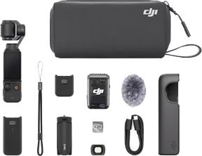 | Lieferumfang | DJI Osmo Pocket 3, USB-C auf USB-C PD Kabel, Schutzhülle, Handgelenkschlaufe, Griff mit 1/4" Gewinde, Weitwinkelobjektiv, DJI Mic 2 Sender (Shadow Black), Mic 2 Windschutz & Magnetclip, Akkugriff, Mini-Stativ, Tragetasche |