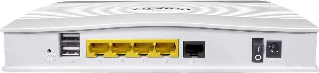 | Schnittstellen | LAN: 3 x 10Base-T/100Base-TX/1000Base-T - RJ-45 WAN: 1 x VDSL2 / ADSL2+ - RJ-11 WAN / LAN: 1 x 10Base-T/100Base-TX/1000Base-T - RJ-45 USB 2.0: 2 x 4-polig USB Typ A |