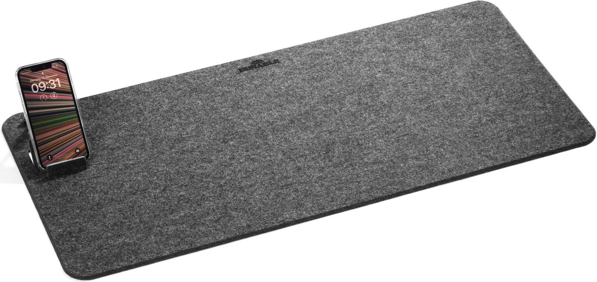 Durable EFFECT 708158 Schreibunterlage Anthrazit-Grau B x H 700 mm 330 - Schreibunterlage mit Handyhalter - welcher sich mühelos ausklappen und ebenso schnell wieder einklappen lässt - ohne dass die Aussparungen sichtbar sind. Die angenehme Oberfläche bietet ein erstklassiges Schreibgefühl - während sie Tische vor Kratzern und Flecken schützt. Das Filzmaterial beeinflusst die Akustik positiv - indem es störende Geräusche wirkungsvoll absorbiert. Die Schreibunterlage lässt sich auf die Hälfte zusammenklappen und ist somit ein perfekter Begleiter im Homeoffice. Sie besteht aus einem leicht zu reinigenden Material - die Oberfläche lässt sich einfach mit einem feuchten Tuch säubern. <ul><li> Maße: 70 x 33 cm (B x H) </li><li> Stärke: 4 mm </li><li> abwischbar </li><li> Werkstoff: PET-Filz - 60 % recycelt </li><li> Farbe: anthrazit</li></ul> (708158)