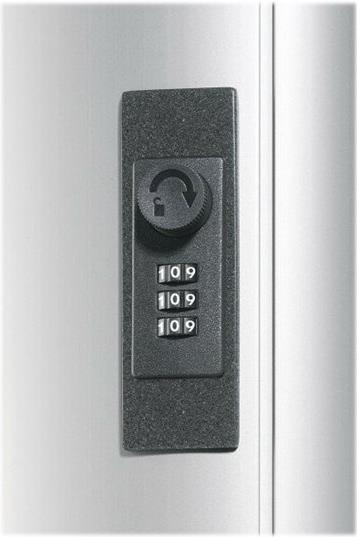 Die KEY BOX code aus Aluminium ist von zeitlosem Design und ermöglicht durch die Türöffnung von mehr als 90° einen leichten Zugriff auf alle Schlüssel. Ein unkompliziertes Anbringen ist durch direktes Verschrauben an der Wand möglich. Der innovative Schlüsselanhänger KEY CLIP besitzt ein permanent sichtbares Beschriftungsfeld, da der Schlüssel flach dahinter liegt. Der KEY CLIP hängt an einer eigens für ihn entwickelten Schlüsselleiste, die mit ihren Präzisionsvertiefungen für sicheren Halt und einen schnellen Zugriff sorgt. Das Zahlenschloss mit individuell einstellbarem Code bietet 1.000 Kombinations-Möglichkeiten. Eine schnelle und einfache Codeänderung erfordert keine zusätzlichen Hilfsmittel. Diese Variante eignet sich hervorragend, wenn mehrere Personen Zugriff auf den Schlüsselkasten haben.