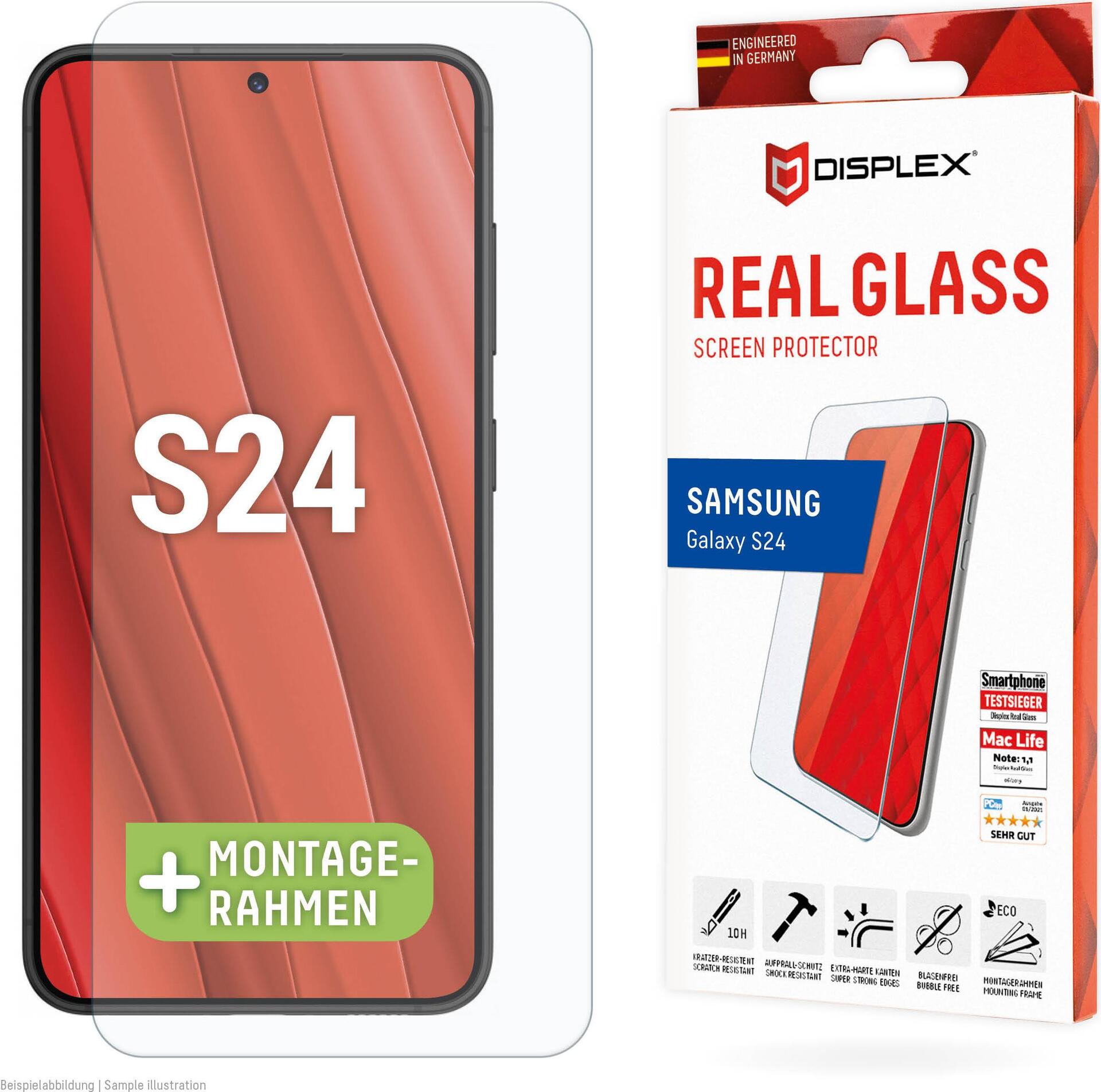 Displex Panzerglas (10H - 2D) für Samsung Galaxy S24 - Eco-Montagerahmen - kratzer-resistent - Samsung - Galaxy S24 - Trockene Anwendung - Staubresistent - Schlagfest - Kratzresistent - Schockresistent - Transparent - 1 Stück(e) (01895)