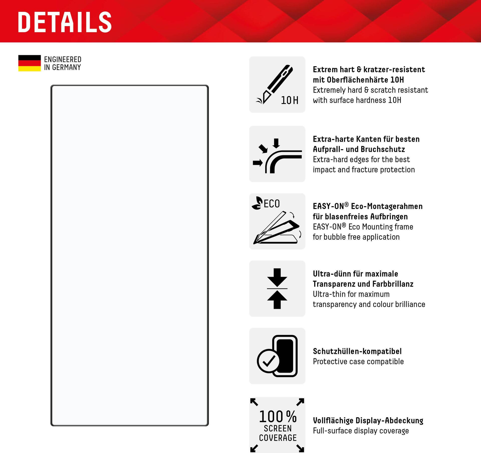 Displex Panzerglas (10H) für Samsung Galaxy S24 Ultra - Eco-Montagerahmen - Full Cover - Samsung - Galaxy S24 Ultra - Trockene Anwendung - Staubresistent - Schlagfest - Kratzresistent - Schockresistent - Schwarz - Transparent - 1 Stück(e) (01899)