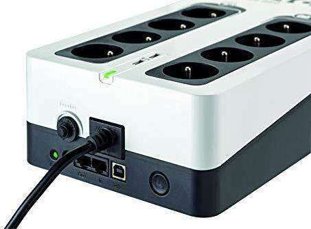 Büroumgebung. Das kompakte Gerät passt auf oder unter Ihren Schreibtisch oder kann an der Wand montiert werden. Eine leicht austauschbare Batterie hilft, die Lebensdauer der USV zu verlängern. HID-kompatibler USB-Anschluss (Kabel im Lieferumpfang enthalten) für die automatische Integration in gängige Betriebssysteme