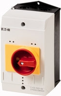 Isolierstoffgehäuse für PKZ mit rot-gelbem Drehgriff zur Verwendung als NOT-AUS-Schalter nach EN 60204