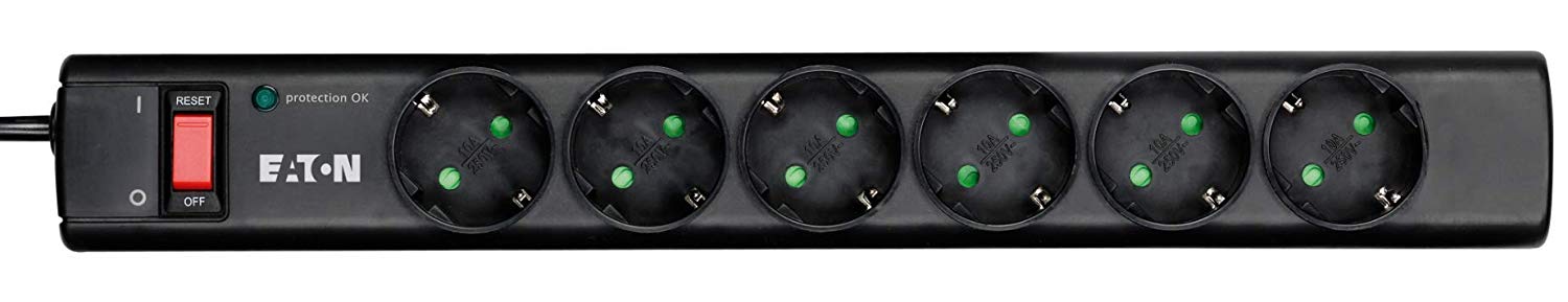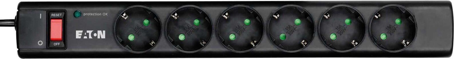 Eaton Protection Strip 6 DIN - Steckdosenleiste mit Überspannungsschutz (6-Fach Schuko Buchse, schaltbar) - schwarz (PS6D)
