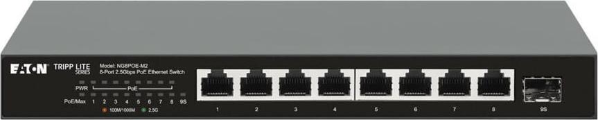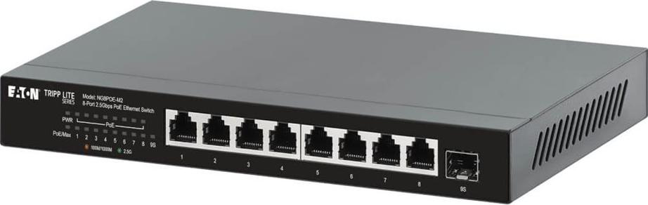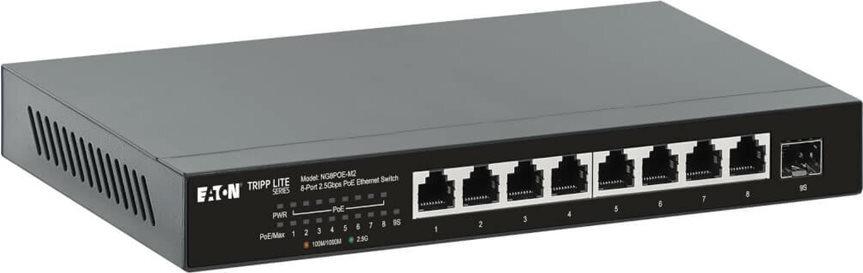 Der Desktop-Gigabit-Ethernet-Unmanaged-Switch der Eaton Tripp Lite-Serie bietet zuverlässige und effiziente Netzwerkverbindungen für verschiedene Umgebungen. Mit acht 10/100/1000/2,5G (PoE+)-Ports unterstützt er Power-over-Ethernet-Funktionen und liefert bis zu 30 W pro Port und eine Gesamt-PoE-Leistung von 100 W. Dieser Switch verfügt über ein lüfterloses Design für einen geräuschlosen Betrieb und eignet sich ideal für den Einsatz auf dem Schreibtisch oder die Wandmontage. Er unterstützt fortschrittliche Technologien wie Auto-Negotiation und Flusskontrolle zur Optimierung der Netzwerkleistung und ist dank seiner Plug-and-Play-Kompatibilität einfach einzurichten. Der Switch ist für unterschiedliche Betriebsbedingungen ausgelegt und kann bei Temperaturen von 0 °C bis 40 °C betrieben und bei extremen Temperaturen von -40 °C bis 70 °C gelagert werden. Sein robustes Metallgehäuse sorgt für Langlebigkeit, während die Energy-Efficient Ethernet (EEE)-Funktionalität zur Reduzierung des Stromverbrauchs beiträgt. Mit einer MAC-Adressentabelle von 4000 Einträgen und Jumbo-Frame-Unterstützung von 12000 Byte ist dieser Switch eine Lösung für kleine bis mittelgroße Netzwerke, die Effizienz und Zuverlässigkeit suchen.