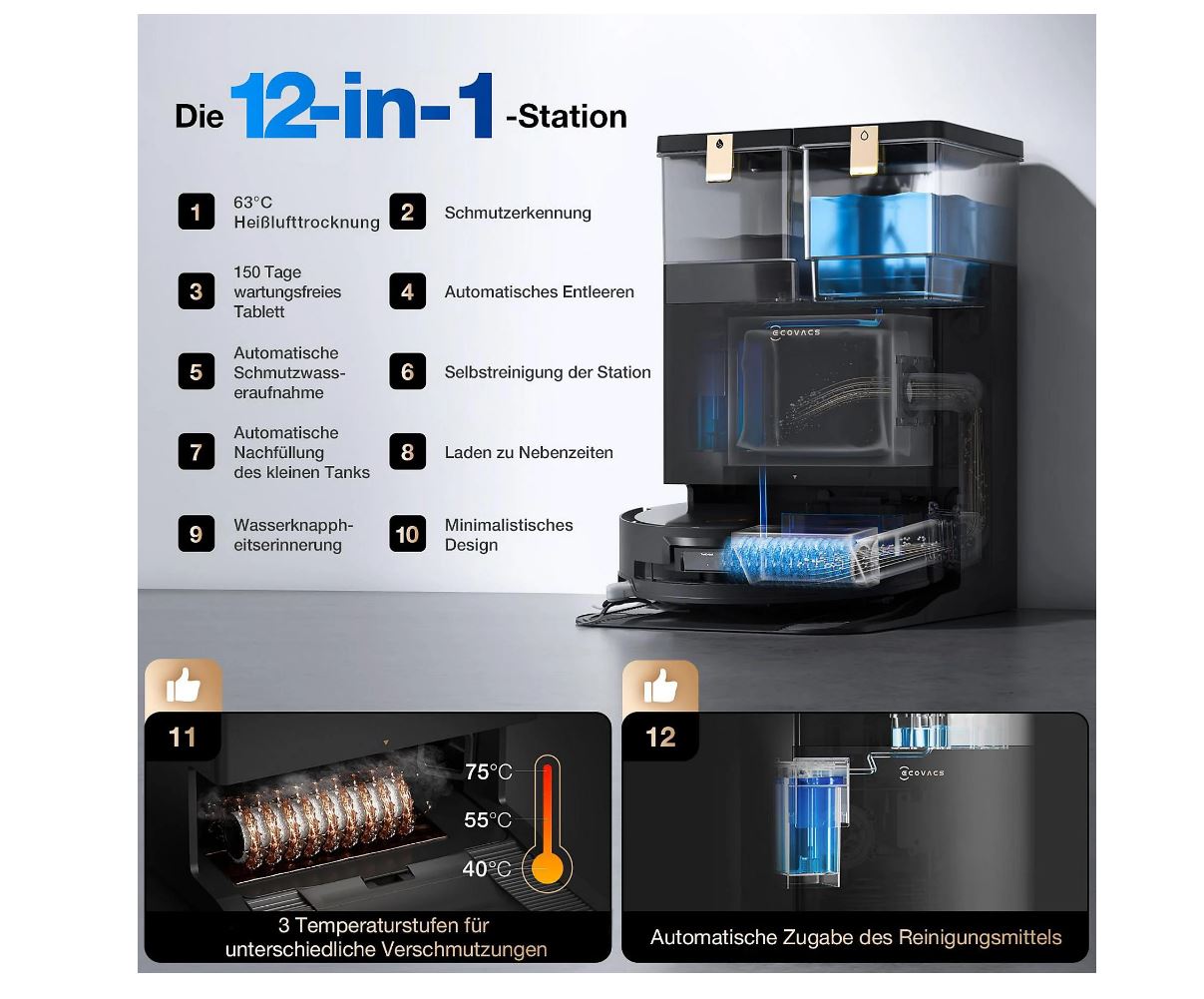 Deebot X8 Pro Omni, Omni-Station, Netzkabel, Seitenbürste, Wischwalze, Staubbeutel, Bedienungsanleitung |