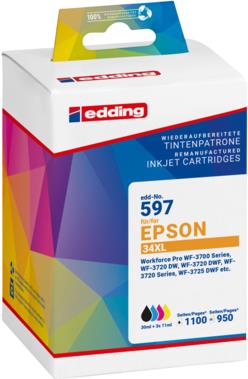 Edding Tintenpatrone ersetzt Epson 34XL /T3471/T3472/T3473/T3474 Kompatibel Kombi-Pack Schwarz, Cyan, Magenta, Gelb EDD-597 18-597 (18-597)