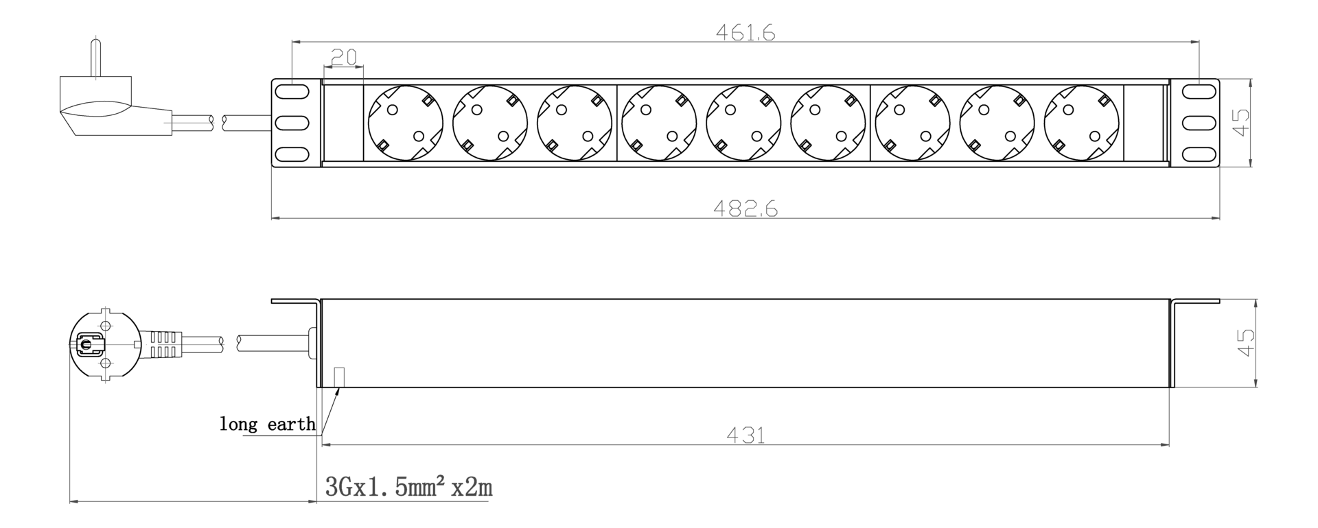 19" 1HE Steckdosenleiste im Aluminiumprofil