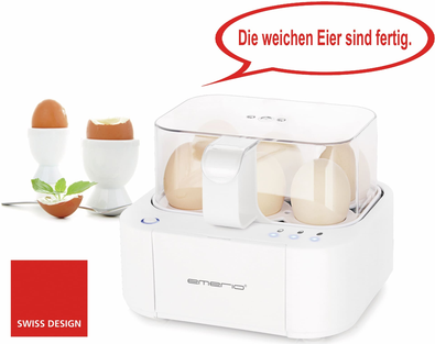 Beim ersten Mal bin ich noch erschrocken, als der Eierkocher mich darüber informierte, dass die weichen Eier fertig seien ;-)