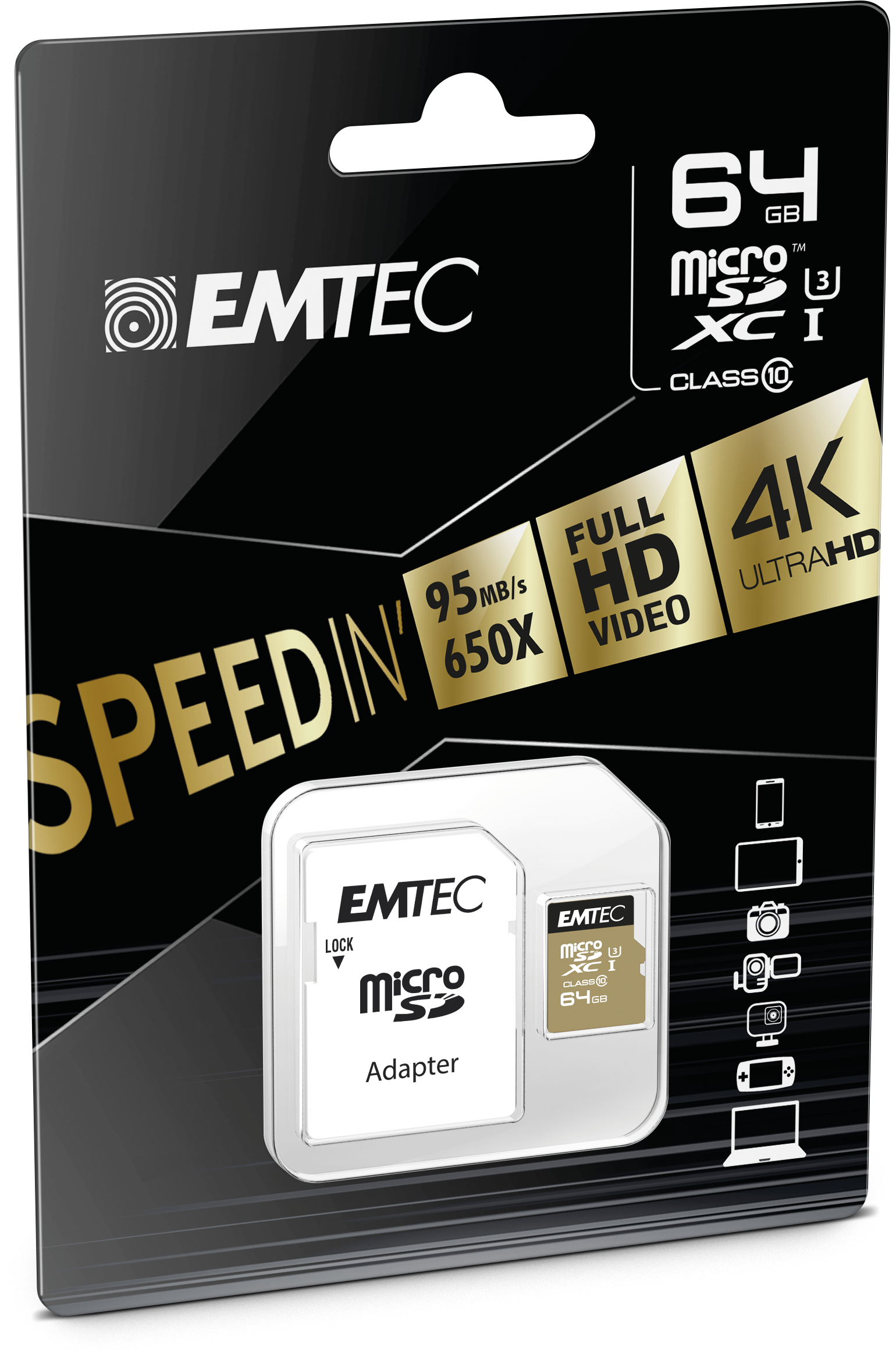 Emtec microSDXC 64GB Class10 Speedin 64GB MicroSDXC Klasse 10 Speicherkarte (ECMSDM64GXC10SP)