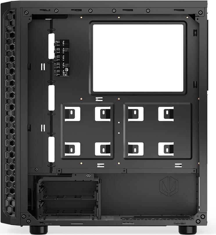 Das ENDORFY Signum 300 ARGB ist ein kompaktes Gehäuse mit einem Glasfenster an der Seite, das die Innereien auf eine tolle Art und Weise präsentiert. Es bietet Platz für alle Komponenten, die Sie benötigen, und lässt sie in einem Regenbogenlicht erstrahlen - Endorfy legt bis zu vier seiner Stratus 120 PWM ARGB-Lüfter bei (Sie können insgesamt bis zu acht montieren!). Bewundernde Blicke deiner Kumpels sind separat erhältlich. Der geräumige Innenraum des ENDORFY Signum 300 ARGB bietet Platz für zwei 3,5-Zoll-Festplatten und zwei 2,5-Zoll-Festplatten (oder vier kleine Laufwerke). Sie werden keine Probleme haben, einen Tower-Kühler oder eine lange (bis zu 350 mm) Grafikkarte zu installieren - auf einer offiziellen Launch-Party für das neueste Spiel, auf das die halbe Welt gewartet hat, mag es ein Gedränge geben, aber nicht im ENDORFY Signum 300 ARGB. Hier hat alles seinen Platz.