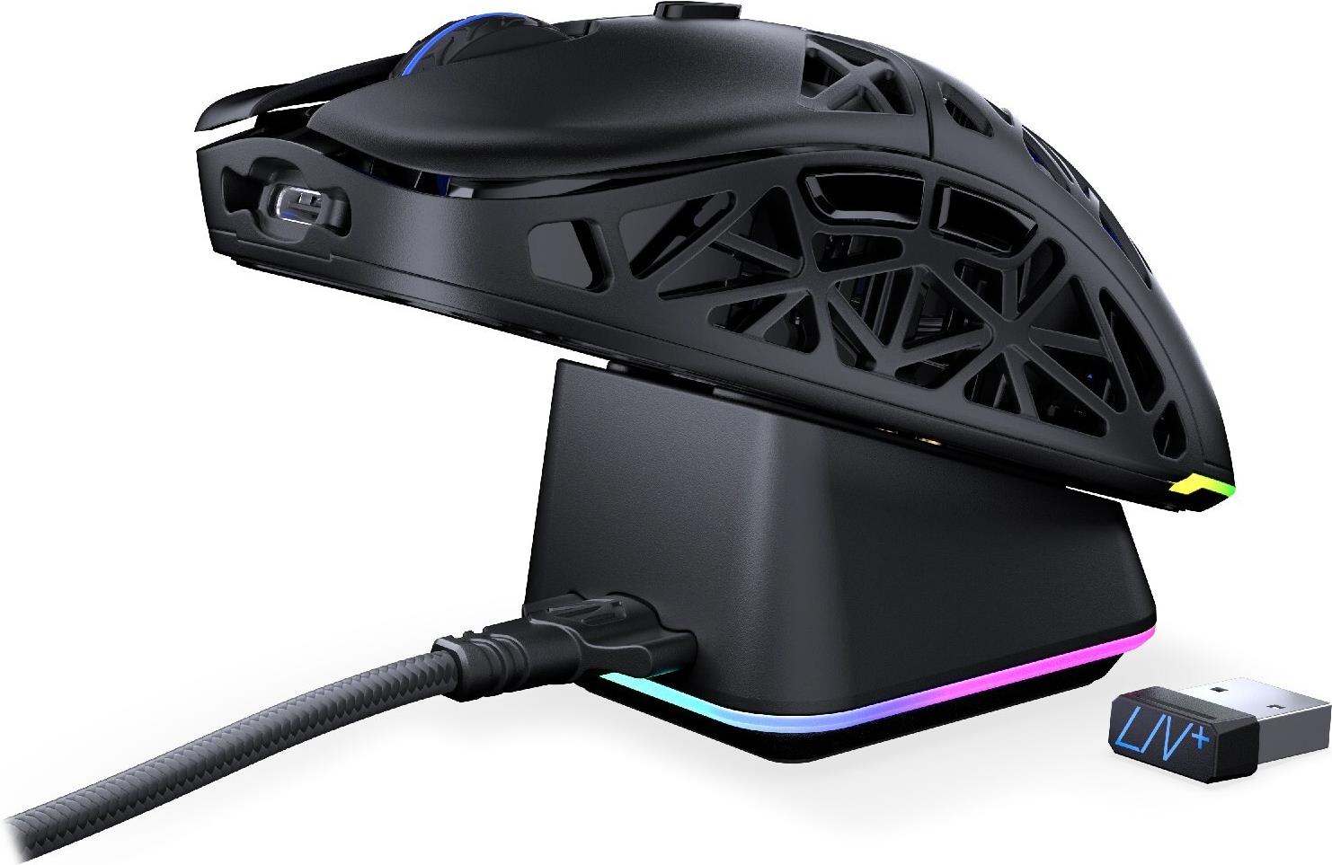 Diese Maus bietet sowohl drahtlose als auch kabelgebundene Verbindungsoptionen und ermöglicht so Flexibilität je nach Benutzerpräferenz. Sie verfügt über eine USB-Schnittstelle und unterstützt eine Abtastrate von 1000 Hz, was eine schnelle und genaue Kommunikation mit dem Computer gewährleistet. Mit sechs programmierbaren Tasten und einer Echtzeit-Empfindlichkeitsumschaltfunktion können Benutzer ihr Gameplay ganz einfach anpassen, um maximale Leistung zu erzielen. Die ARGB-Hintergrundbeleuchtung sorgt für eine anpassbare Ästhetik und macht diese Maus sowohl funktional als auch optisch ansprechend.