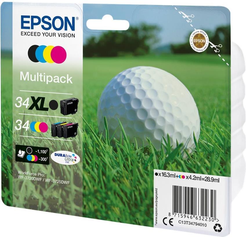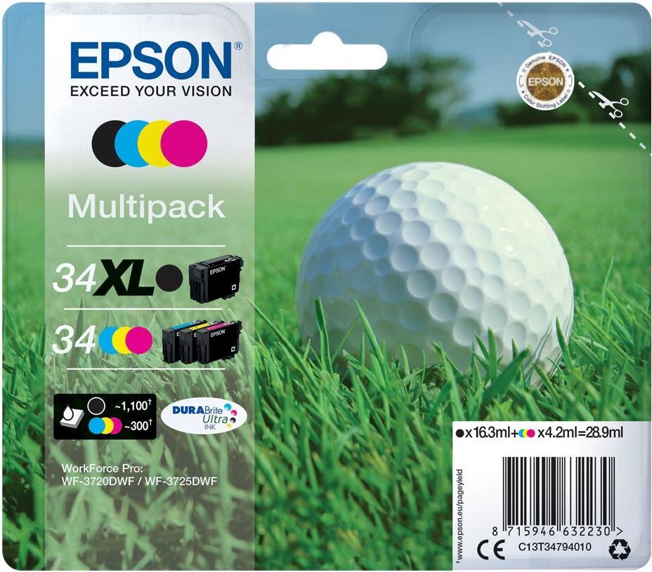 | Produktbeschreibung | Epson 34XL - 4er-Pack - XL - Schwarz, Gelb, Cyan, Magenta - original - Tintenpatrone |