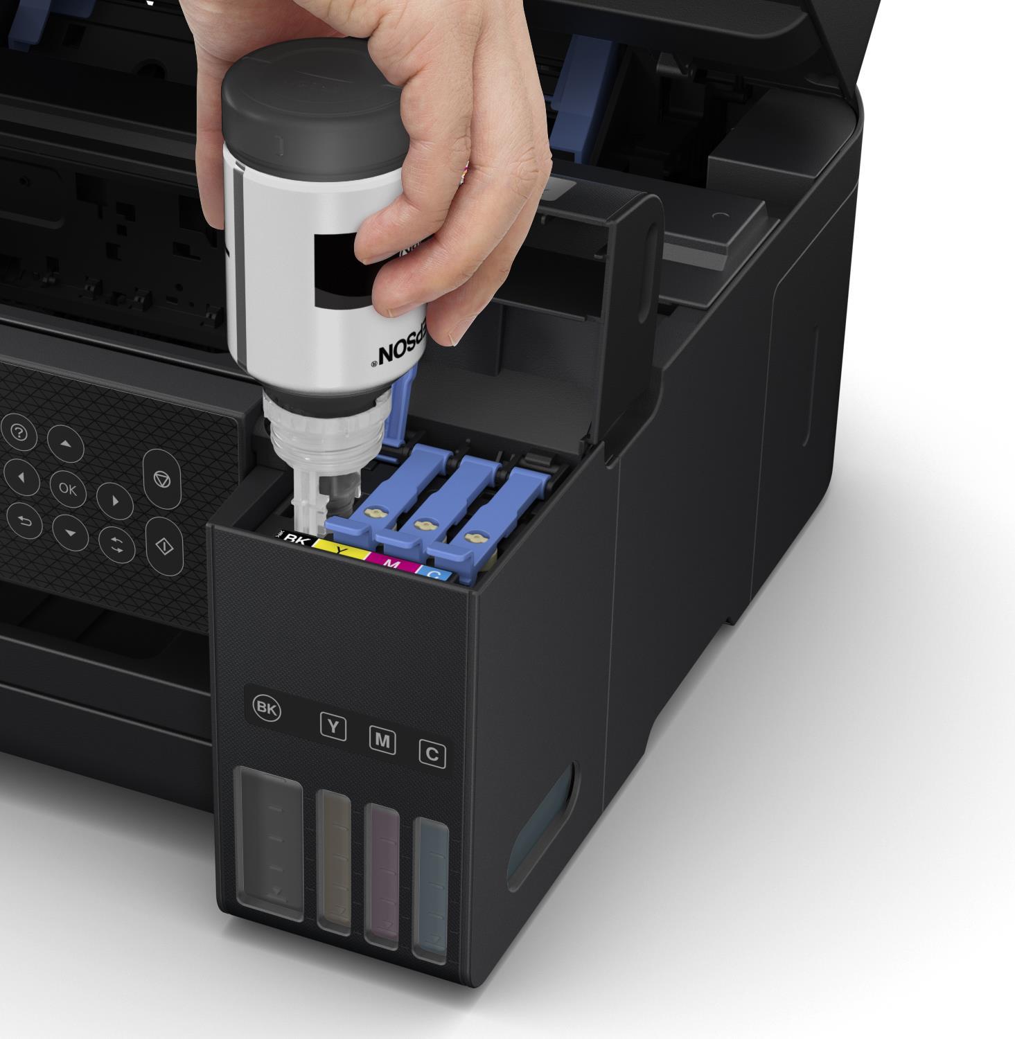 Sparen Sie bis zu 95 % an Druckkosten mit den patronenfreien EcoTank Druckern von Epson. Dank der im Lieferumfang enthaltenen Tintenflaschen können die integrierten großvolumigen Tintentanks leicht nachgefüllt werden. Da keine Patronen ausgetauscht werden müssen, flexible Anschlussmöglichkeiten bestehen und beidseitig gedruckt werden kann, ist dies der perfekte Drucker für alle, die hochwertige Ausdrucke zu unglaublich niedrigen Kosten pro Seite wünschen.