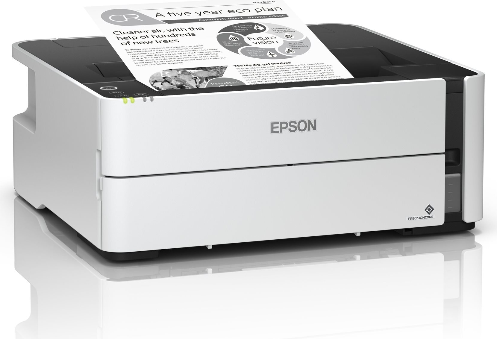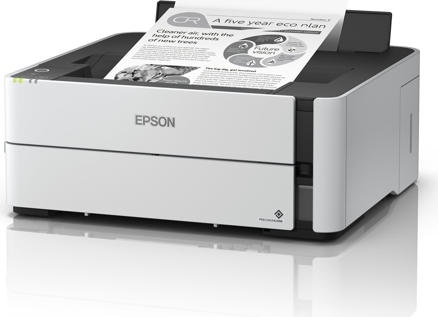 Der neue netzwerkfähige EcoTank-Schwarzweißdrucker für den professionellen Anwender überzeugt mit extrem niedrigen Gesamtbetriebskosten und einem benutzerfreundlichen, eleganten Design. Im Lieferumfang enthalten sind zwei Tintenflaschen für den Druck von bis zu 11.000 Seiten, die ein sauberes und kinderleichtes befüllen des Tanks unterstützen. Mit einer WiFi-, USB- und Ethernet-Anschlussmöglichkeit, PCL-Unterstützung, Duplex-Druck sowie einer schnellen Reaktionszeit von sechs Sekunden bis zum ersten Ausdruck ist er nicht nur flexibel sondern auch höchst produktiv.