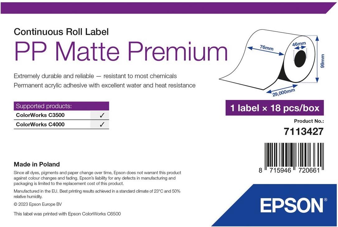 Epson Premium - Polypropylen (PP) - matt - permanenter Acrylklebstoff - Rolle (7,6 cm x 29 m) 18 Rolle(n) Etiketten-Endlospapier