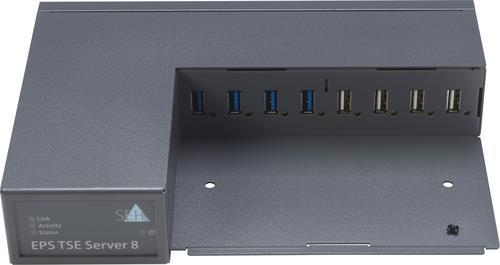 Gesetzliche VorschriftenDer EPS TSE Server 8 bindet bis zu 8 Technische Sicherheitseinrichtungen des Typs USB TSE2/3 in das Netzwerk ein. Mit dieser BSI-TR-03153-zertifizierten TSE wird dies entsprechend der deutschen Kassensicherungsverordnung, die am 1. Januar 2020 in Kraft getreten ist, zur fiskalfähigen Lösung. AnwendungsbereicheBesonders geeignet für den Lebensmittelhandel, das Hotelgewerbe und alle Bereiche mit vielen Kassen und erhöhten Sicherheitsanforderungen. Sie erhalten eine zentrale Lösung für alle Kassenplätze, unabhängig von Kassenplattform und Schnittstellen. Bei dem EPS TSE-Server 8 sind die wertvollen TSE-Module sicher und zentral in einem abschließbaren Gehäuse aufbewahrt. Dadurch sind sie sicher vor Diebstahl, Beschädigung und Verlust geschützt. Das optional erhältliche Rack-Mount-Kit (Artikelnummer 7112287) ermöglicht die perfekte Installation in einen Serverschrank. So können Sie aus dem gesamten Netzwerk einfach auf die TSE-Module zugreifen. Durch die optimale Auslastung von TSE-Modulen optimieren Sie dabei ganz nebenbei Ihre Umgebung und senken die Kosten. Einfache IntegrationEinfache und komfortable Administration, Konfiguration und Wartung über den Webbrowser via integriertem Web-Interface: einfaches Überwachen und Einstellen des Servers sowie einfache Überwachung der angeschlossenen TSEs. Bei der Implementierung setzt der EPS TSE-Server weiterhin auf das bestehende API und bietet höchstmögliche Flexibilität und Transparenz. Drucken bleibt so einfach wie gehabt – und wird gesetzeskonform wie gefordert! Da neben der hardwareseitigen Integration auch die Anbindung an die jeweilige POS-Software erfolgen muss, bietet Epson für die Entwicklung und Software-Anpassung passenden Treiber und Dokumentationen, sowie Software Development Kits mit entsprechenden Programmierbeispielen. Weitere Spezifikationen:• Acht USB-Schnittstellen an der Vorderseite: 4 x USB 3.0 Super-Speed, 4 x USB 2.0 Hi-Speed• Überwachung der TSE und Anzeige bei Statusänderung• Hohe Sicherheit durch CC-Zertifizierung• Gigabit Ethernet (10Base-T, 100Base-TX, 1000Base-T) an der Rückseite• Umfassendes Sicherheitspaket: Passwortschutz, Verschlüsselung, Zertifikatsverwaltung, Authentifizierung (802.1X)• 3 Jahre GarantieDie kompatible USB TSE im ÜberblickDie BSI-TR-03153-zertifizierte USB TSE (Artikelnummer 7112348 - nicht im Lieferumfang enthalten) hat eine Zertifikatslaufzeit von 5 Jahren nach Herstellungsdatum2 ( Epson Service über die gesamte Laufzeit) und eine unterstützte Anzahl von kryptografischen Signaturen von 20 Millionen.
