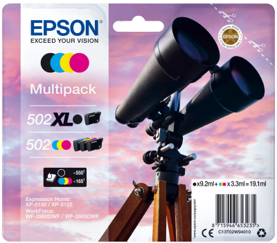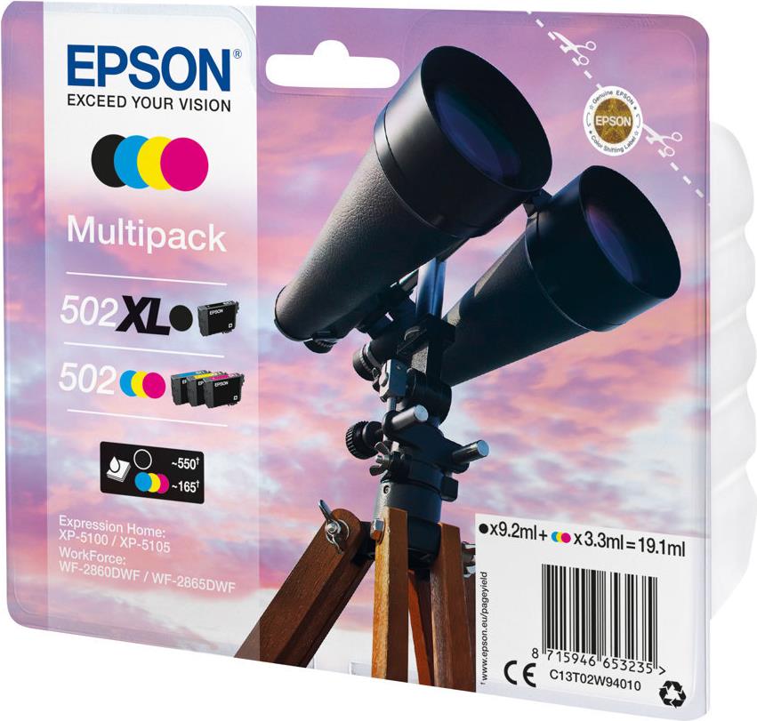 | Produktbeschreibung | Epson 502XL Multipack - 4er-Pack - mit hoher Kapazität - Schwarz, Gelb, Cyan, Magenta - original - Tintenpatrone |