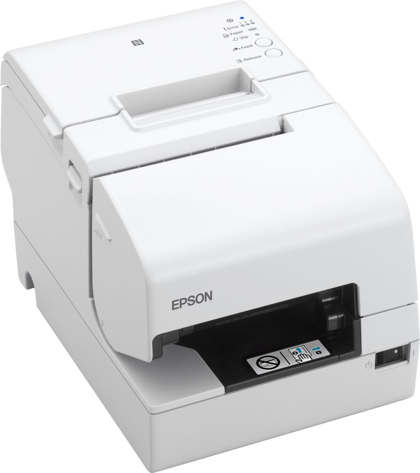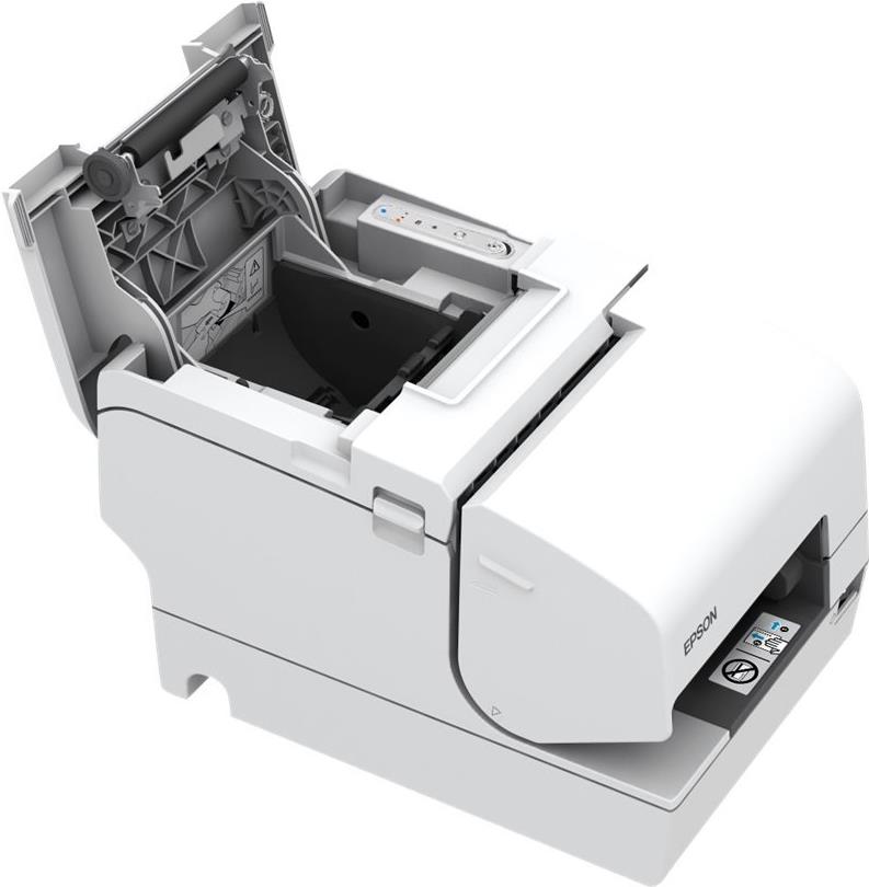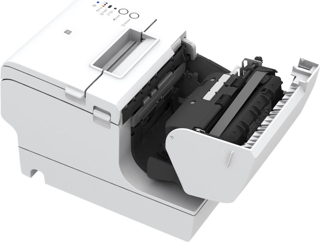 Der TM-H6000V ist ideal für Umgebungen mit hohem Kundenaufkommen, denn er bietet eine Reihe von Funktionen, mit denen Unternehmen ihre Effizienz insgesamt verbessern können. Er druckt mit Geschwindigkeiten von bis zu 350 mm/s , bietet schnelle Scheckverarbeitung und einen flinken Schneidautomaten.