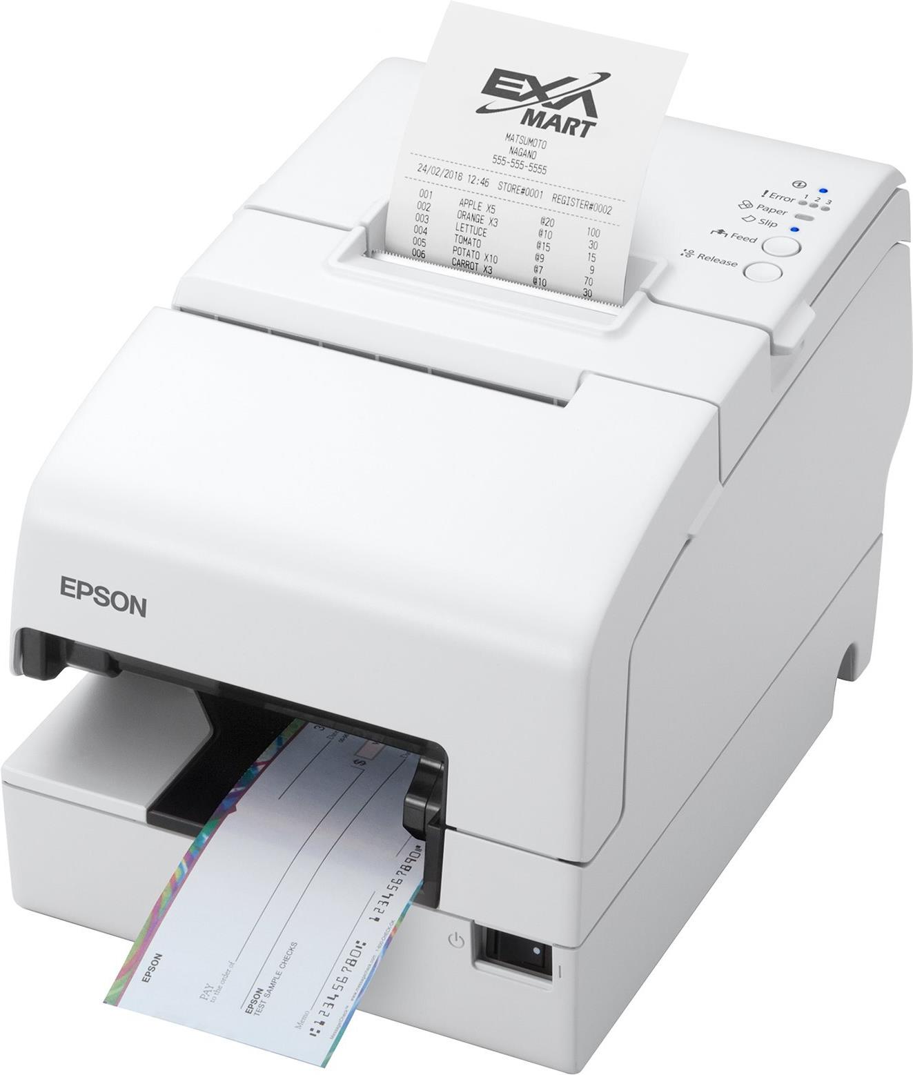Dieser integrierte Point-of-Sale-Drucker kann zum Drucken von Belegen und Quittungen sowie zur Scheckverarbeitung verwendet werden – alles in einem Gerät! Er ist zuverlässig, bietet nützliche Anschlussmöglichkeiten und sehr niedrige Gesamtbetriebskosten. Der Drucker ist ideal für Unternehmen, die am Point of Sale Schecks verarbeiten und mit demselben Gerät Belege drucken möchten.