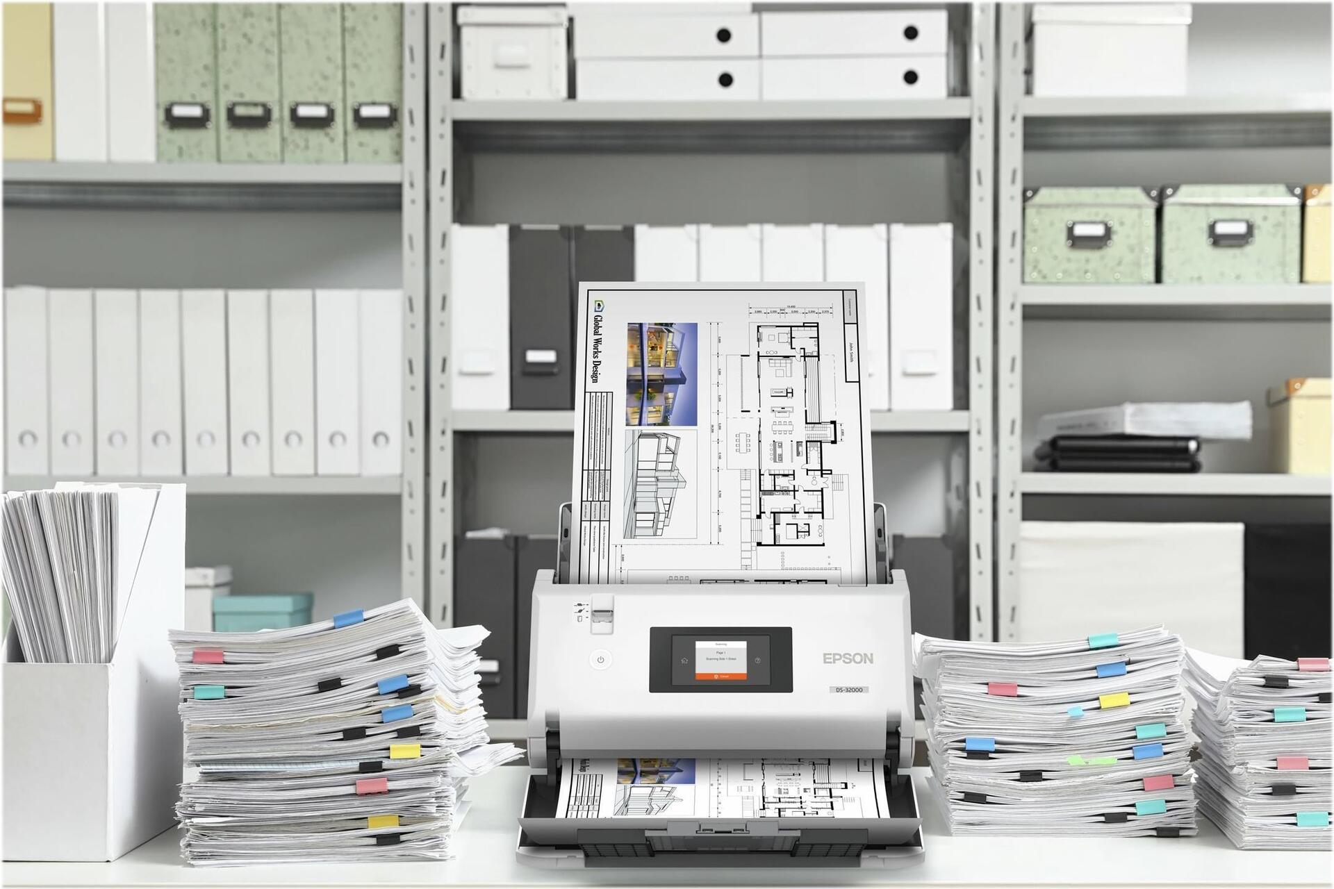 Sorgen Sie mit dem leistungsstarken WorkForce DS-32000 mit Scangeschwindigkeit von bis zu 90 Seiten pro Minute für Innovation in Ihrer individuellen Scanumgebung. Dank der fortschrittlichen Technologie und vielseitigen Handhabung von Medien können Sie bis zu 40.000 Seiten täglich scannen.
