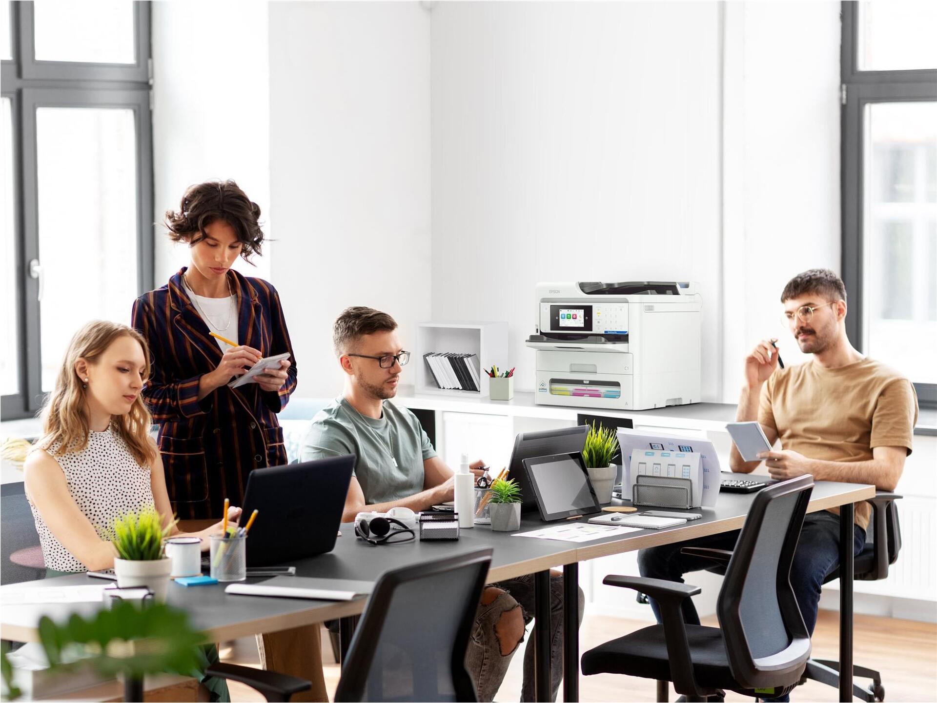 Der EM-C800RDWF RIPS-Tintenstrahldrucker bietet eine Lösung für effizientes, ununterbrochenes Drucken in großen Mengen, ohne dass ein Wechsel der Verbrauchsmaterialien notwendig ist. Mit nahtloser Integration (in Lösungen von Drittanbietern), geringer Standfläche und niedrigen Gesamtbetriebskosten (TCO) ist er ideal für alle Unternehmen. Der niedrige Stromverbrauch1, die kurze Reaktionszeit bis zum ersten Ausdruck (FPOT)2 und Druckgeschwindigkeiten von bis zu 25 Seiten/Min.3 machen dieses Gerät ideal für Büroumgebungen.