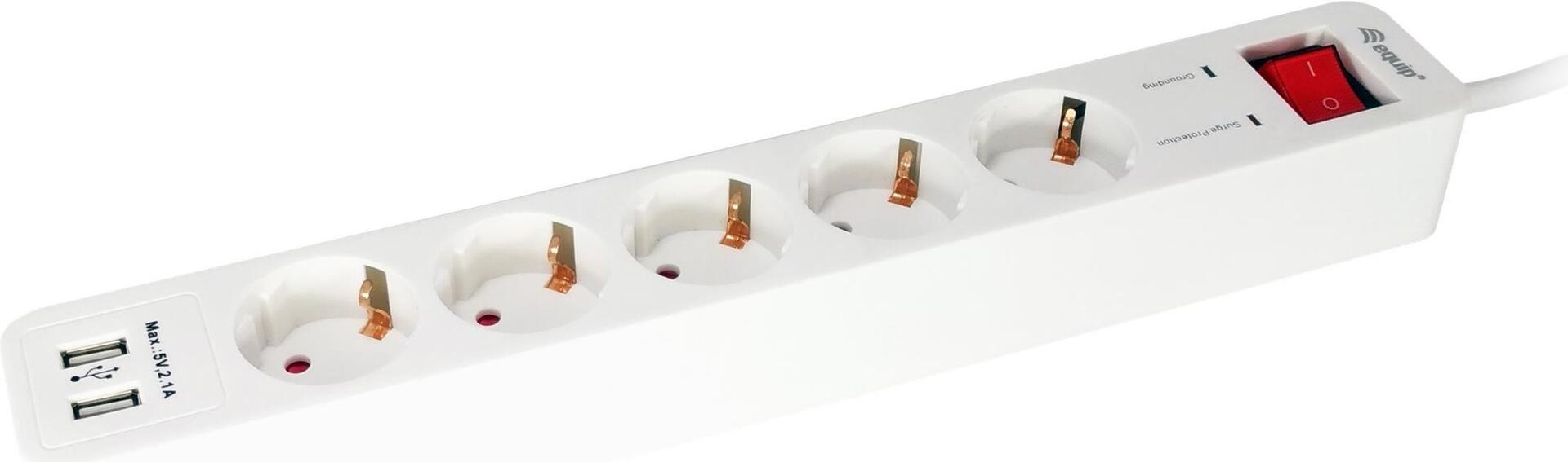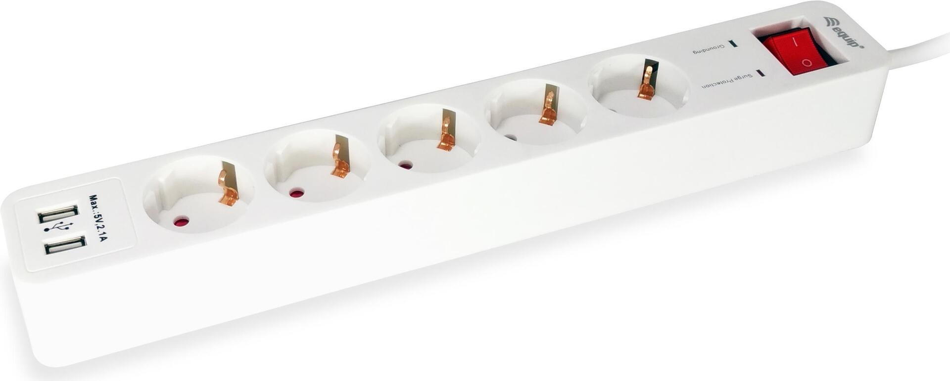 Der equip 4-Socket Power Strip verfügt über 4 Standard-Steckdosen mit 2 USB-Anschluss, passt zu den meisten Ihrer Stromversorgungen und bietet eine sichere Stromversorgung.