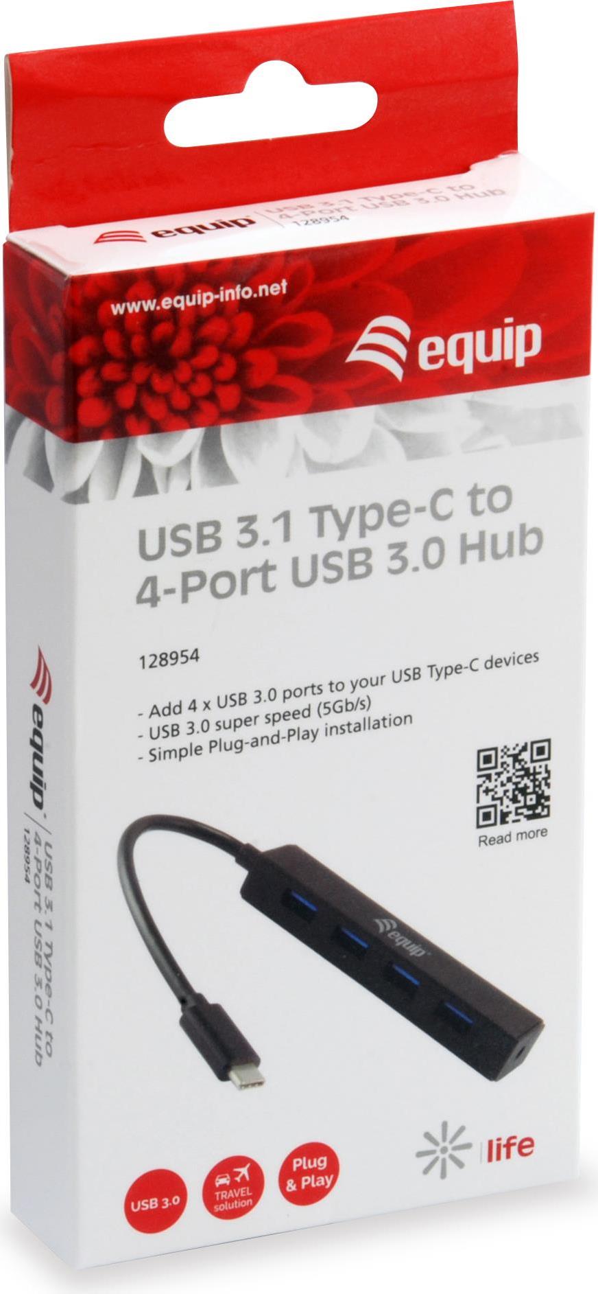 Equip USB-Hub USB3.1-C zu USB3.0, 4Port, schwarz (128954)