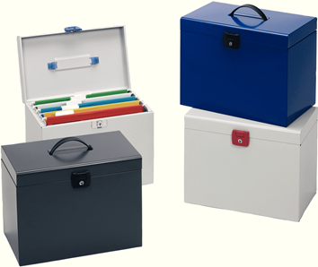 Esselte Hängemappenbox Metal, farbig sortiert aus Metal, mit Tragegriff, inkl. 5 Registerfächer, - 4 Stück (48320)