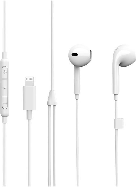 eSTUFF - Ohrhörer mit Mikrofon - Ohrstöpsel - kabelgebunden - Lightning - weiß - für Apple iPhone (Lightning) (ES652010)