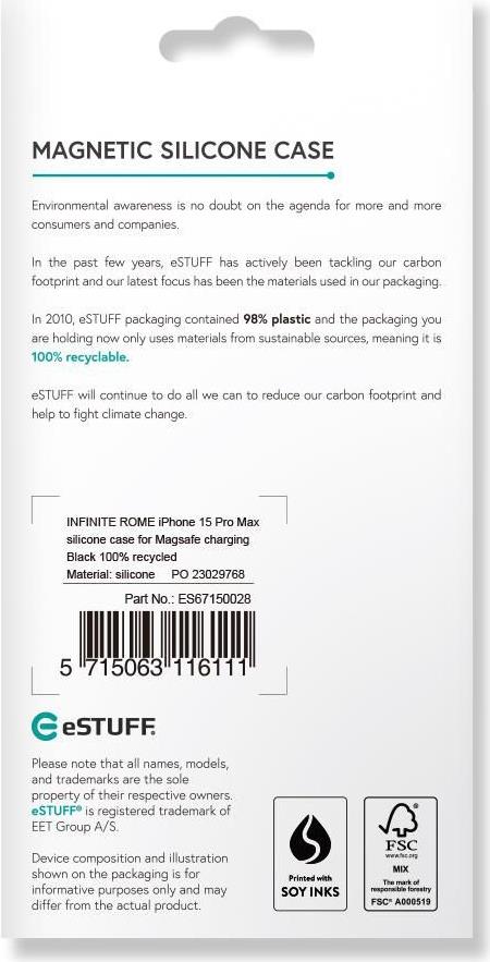 eSTUFF Infinite Rome - Hintere Abdeckung für Mobiltelefon - magnetisch - kompatibel mit MagSafe - Silikon, Polycarbonat - Schwarz - für Apple iPhone 15 Pro Max (ES67150028)