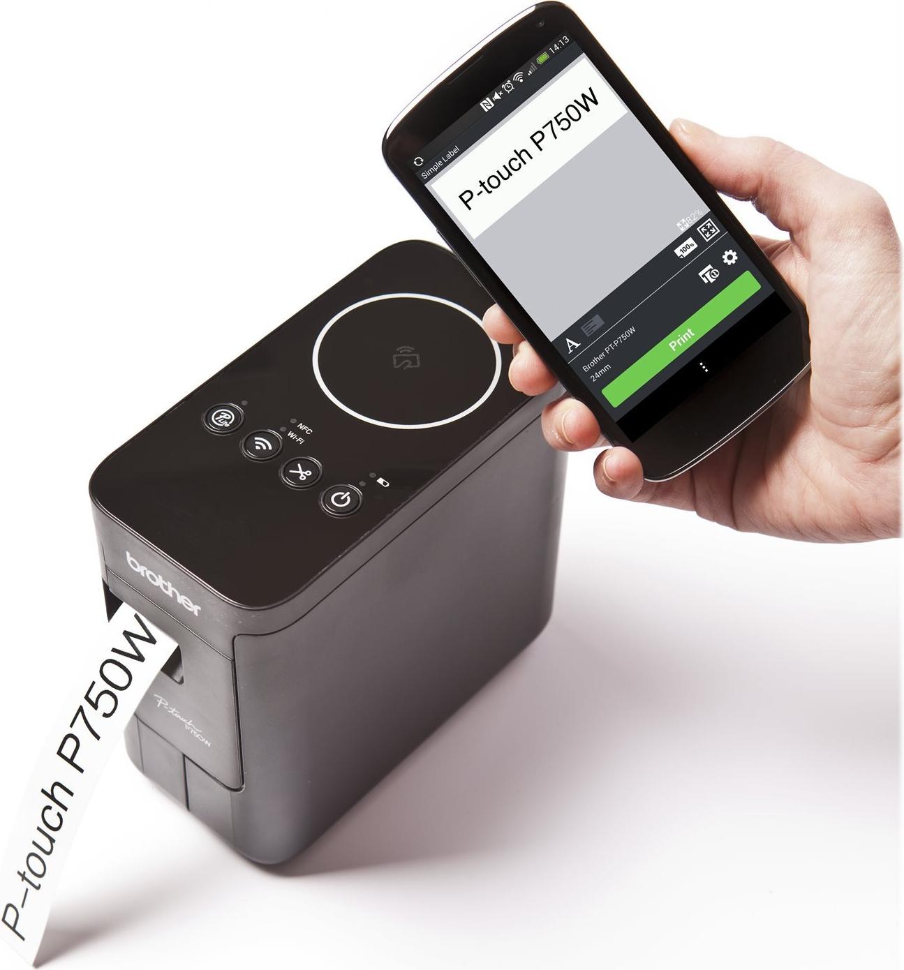 Highlight ist die integrierte WLAN-Schnittstelle, womit das Gerät sich auch über Smartphone/Tablet problemlos ansteuern lässt. Zur Etikettenerstellung steht die kostenlose Brother App „iPrint&Label" zur Verfügung. Zudem können NFC-fähige Mobilgeräte über die App direkt auf das PT-P750W zugreifen. Die Applikation wird sofort gestartet bzw. installiert sich automatisch, sobald Ihr Mobilgerät in die Nähe des NFC-Feldes des PT-P750W gebracht wird.
