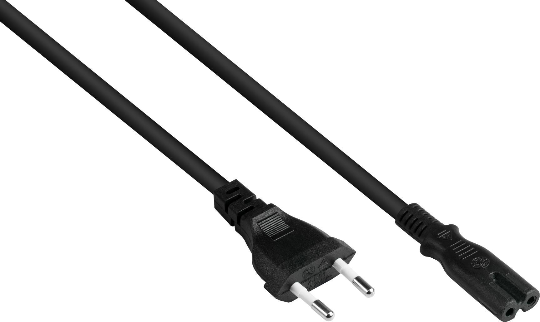 Euro-Netzkabel Euro-Stecker Typ C (gerade) an C7/Euro 8 Buchse (gerade), schwarz, 0,75 mm², 0,75 m, Good Connections®