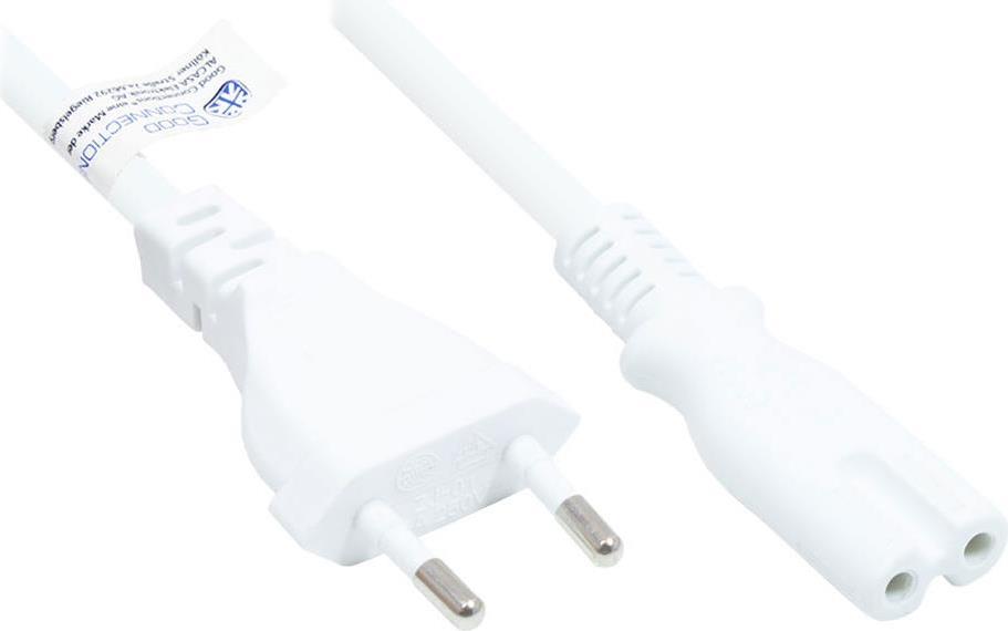 Euro-Netzkabel Euro-Stecker Typ C (gerade) an C7/Euro 8 Buchse (gerade), weiß, 0,75 mm², 3 m, Good ...