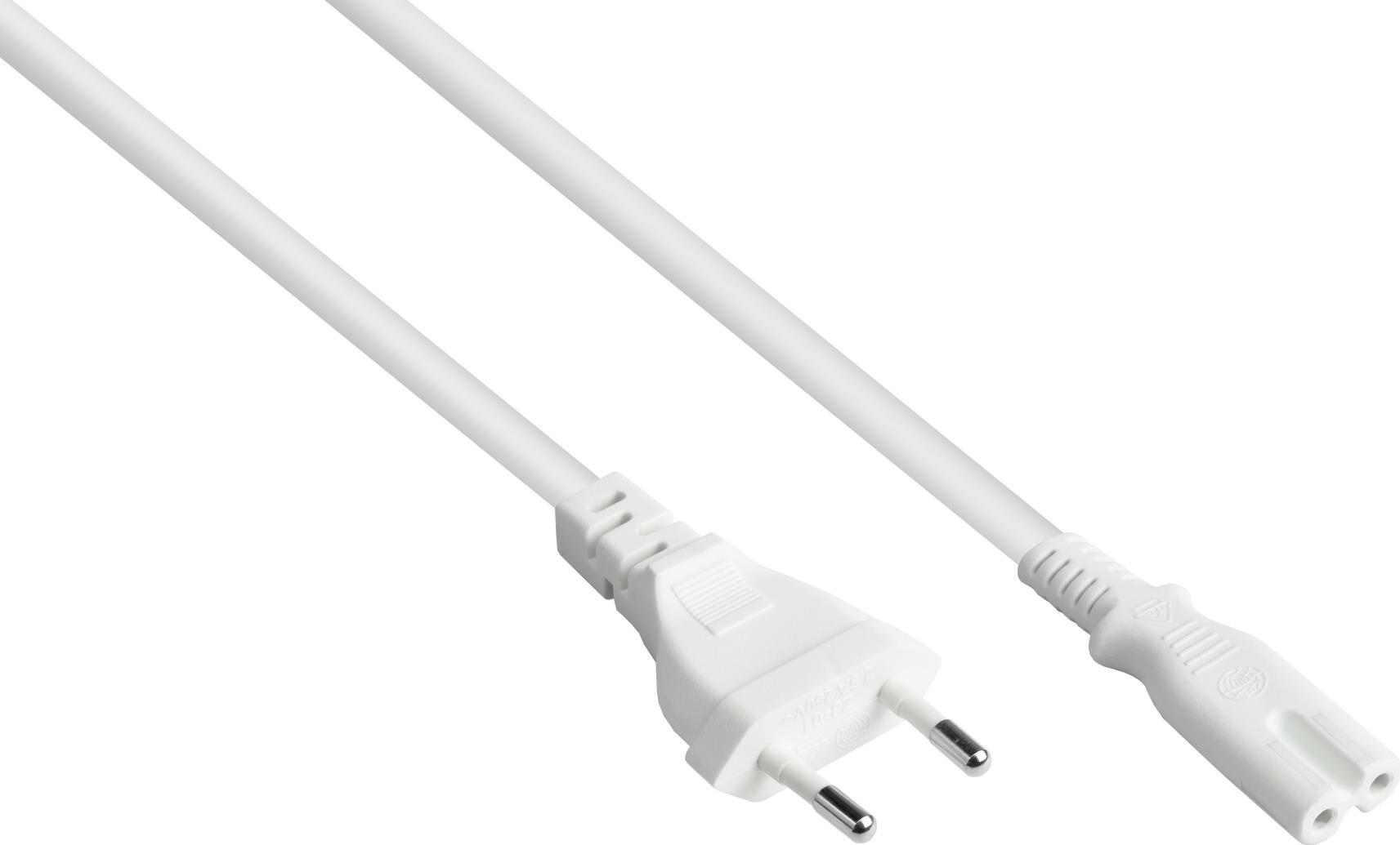 Euro-Netzkabel Euro-Stecker Typ C (gerade) an C7/Euro 8 Buchse (gerade), weiß, 0,75 mm², 7,5 m, Good Connections® Anschluss 1: Euro-Stecker Typ C (gerade) Anschluss 2: C7 / Euro 8 Buchse (gerade) Kabel: H03VVH2-F ...
