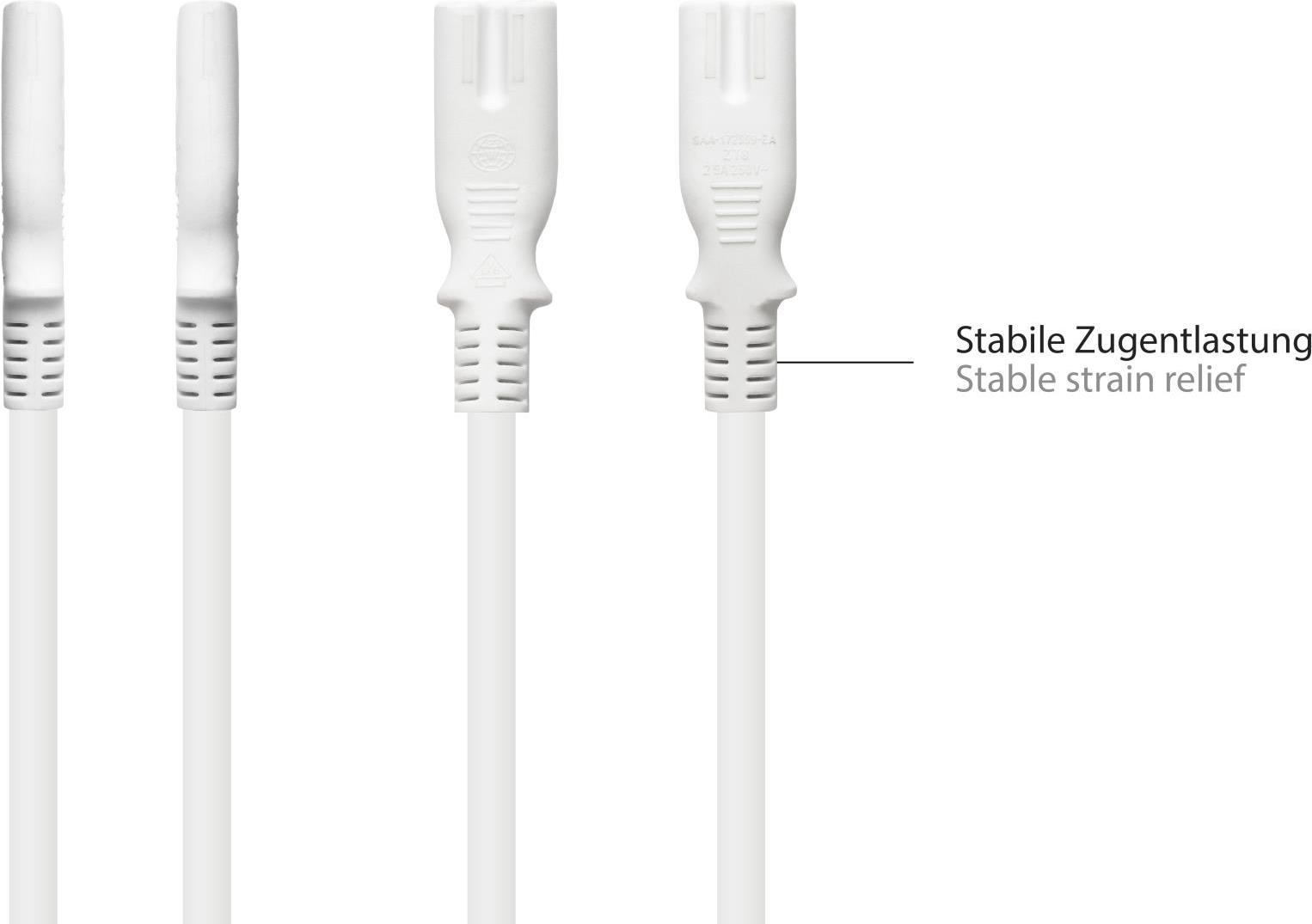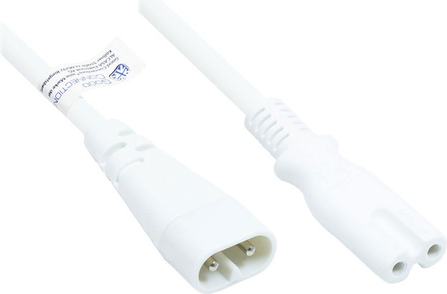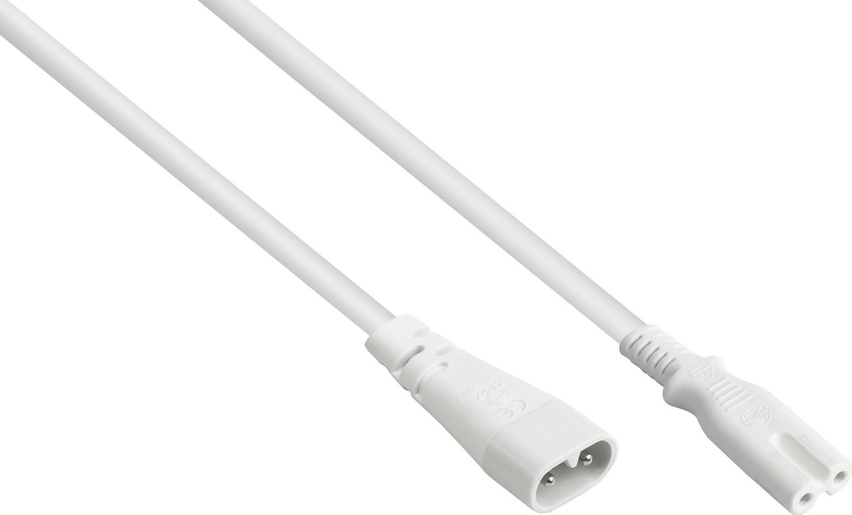 Euro-Verlängerung C8 Stecker (gerade) an C7/Euro 8 Buchse (gerade), weiß, 0,75 mm², 2 m, Good Connections®