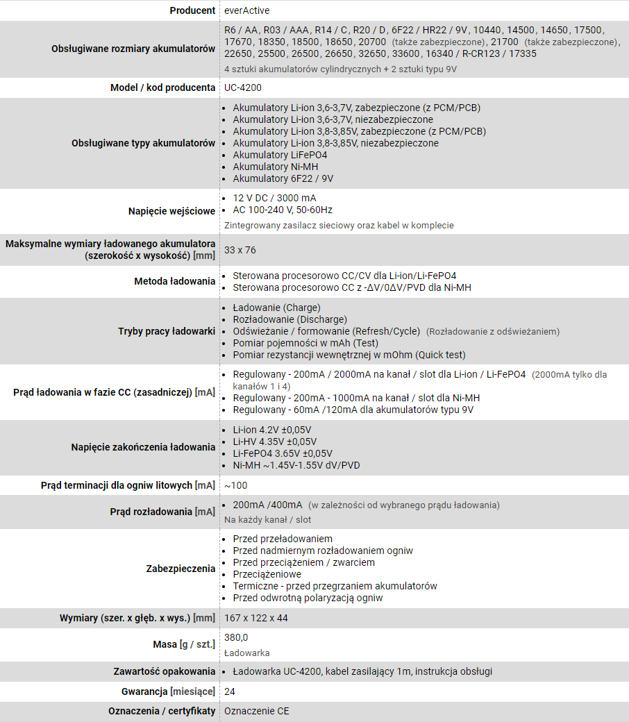 Everactive UC-4200 - Lithium-Eisen-Phosphat (LiFePO4) - Lithium Polymer (LiPo) - Lithium-Ion (Li-Ion),... - 9V - AA - AAA - C - SC (UC4200)