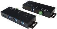 Die EX-1189HMVS-3 stellt 7 verschraub bare USB 3.2 Gen1 (vorher genannt USB 3.0) Downstream-Ports zur Verfügung mit 15KV ESD Überspannungs-Schutz für jeden Ausgang. Die EX-1189HMVS-3 stellt gleichzeitig für bis zu 4 Ports 1.5A Strom zur Verfügung zum Aufladen von iPhone, iPad, Smartphone und Tablet. Es ist möglich bis zu sieben externe USB Peripheriegeräte an einen USB 3.2 Gen1 Port vom Notebook, Desktop Rechner oder Server im 19“ Rack anzuschließen. Das mitgeliefertem Kabel EX-K1571V (1.5 Meter) kann ohne Schraubenzieher an der EX-1189HMVS-3W mit Rändelschrauben befestigt werden. Er kann in Automatisierung, Industrie und Büroanwendungen eingesetzt werden. Dank seinem speziellen Gehäuse kann die EX-1189HMVS-3 an die Wand, unter einen Tisch oder in ein 19“ Schrank (optional mit EX-6099) geschraubt werden.