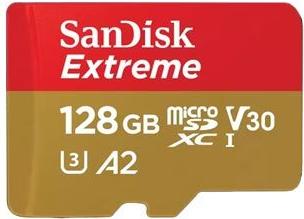 Extreme microSDXC 128GB microSDXC / read 190MB/s / write 90MB/s / 1 year RescuePRO Deluxe / A2 Class 10 V30 / UHS-I / U3 / with SD Adapter (SDSQXAA-128G-GN6MA)